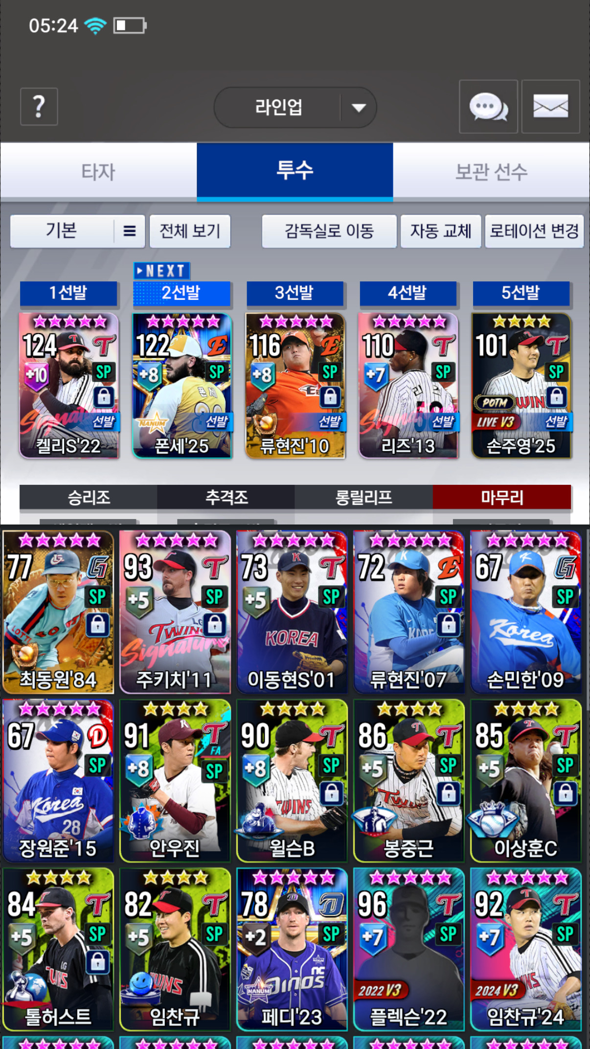 사람들이 좋다는 선발 선수들 5명 이상이여서..