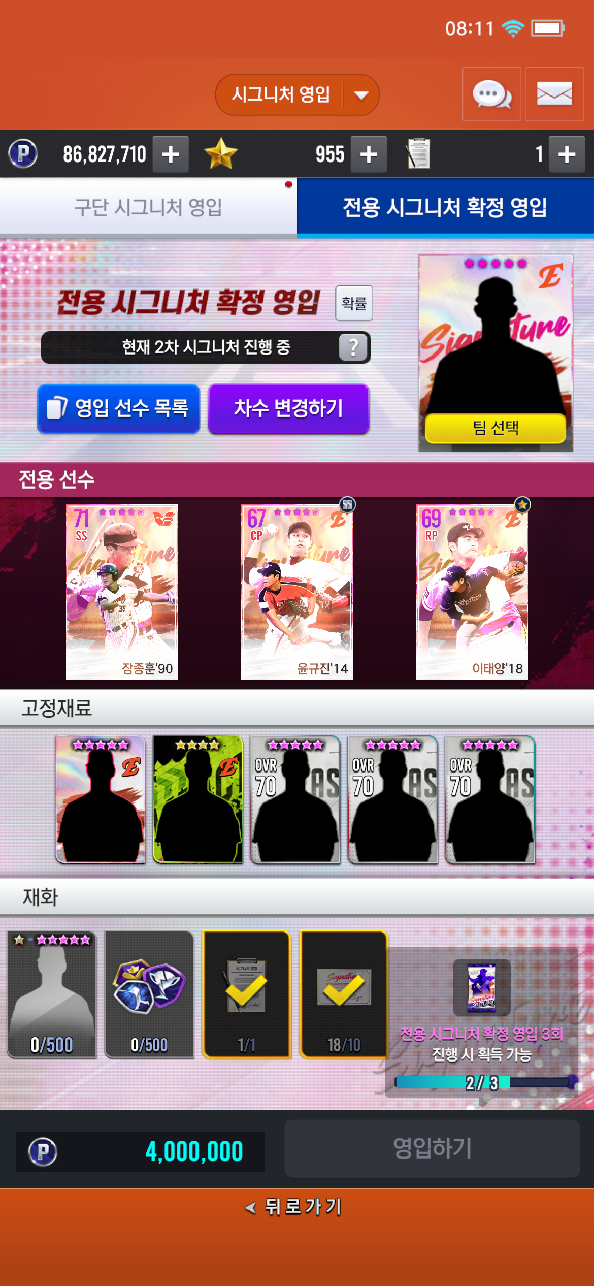 아니면 3번째에는 전용영입시그 선택권만 1장 주는건가요??