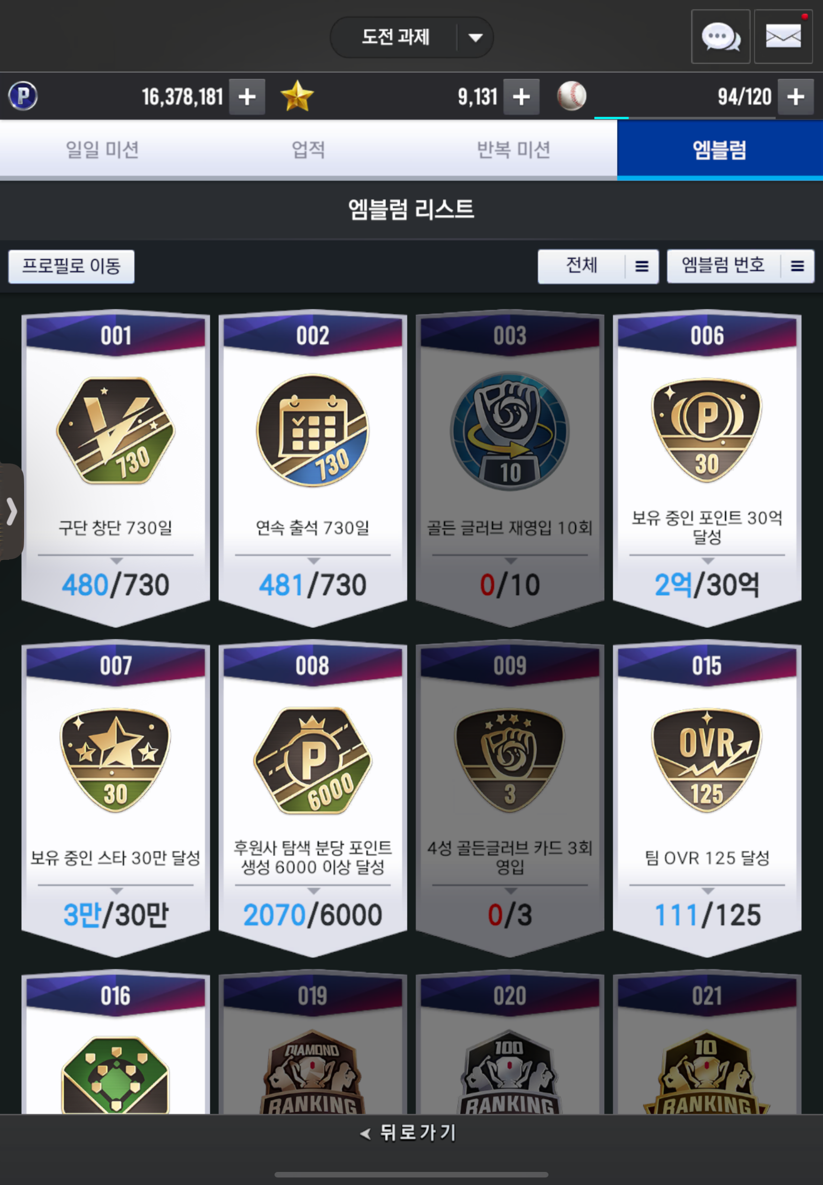 팀 오버롤 110목표