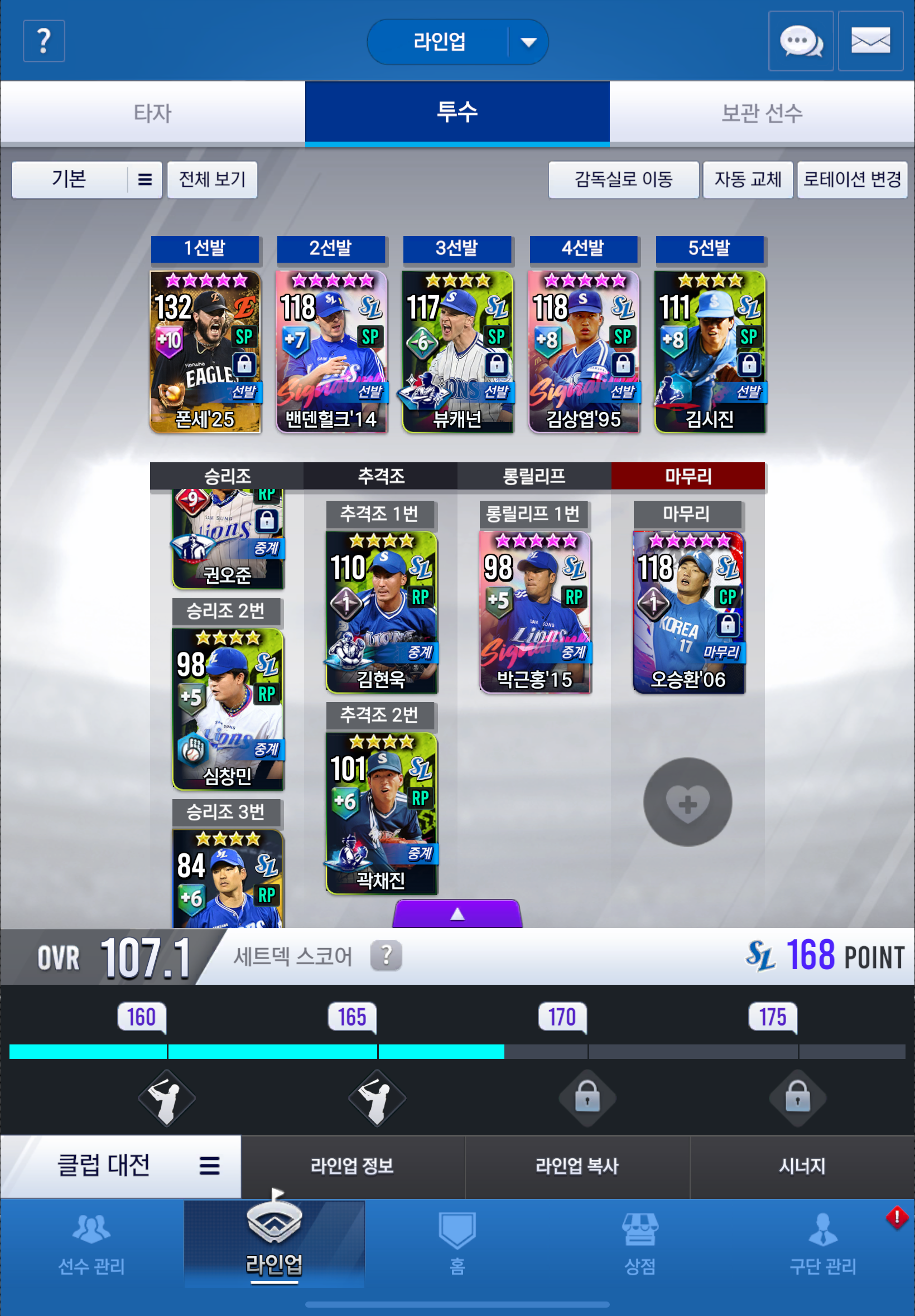 이번에 받은 임선팩쓸려고하는데 선발, 불펜, 유격수중에 뭘 바꾸는게 좋을까요?