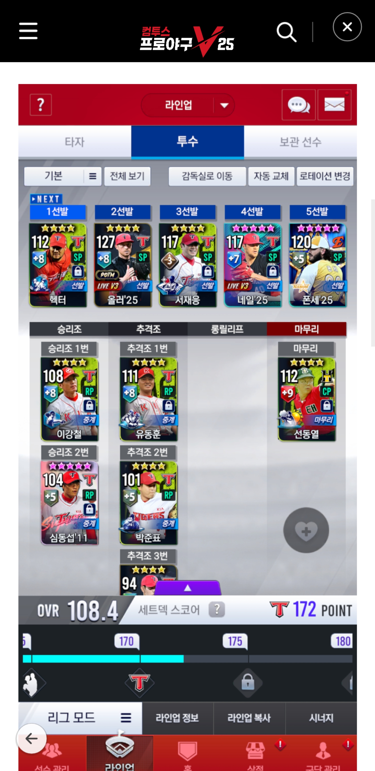 무과금이고 25 골글 폰세 있는데 키우는 중이라 아직 선발에는 안 넣었습니다