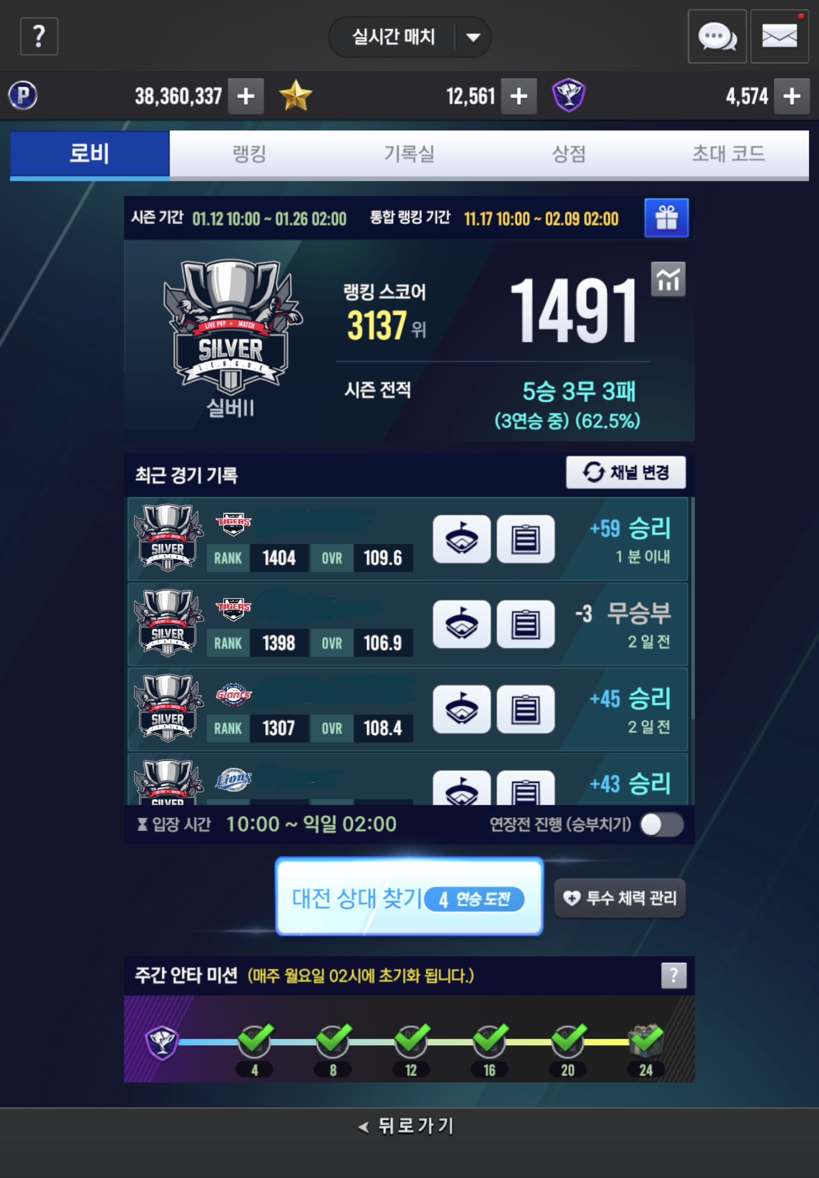 ⭐ 꾸준히 실시간대전 플레이 하면서