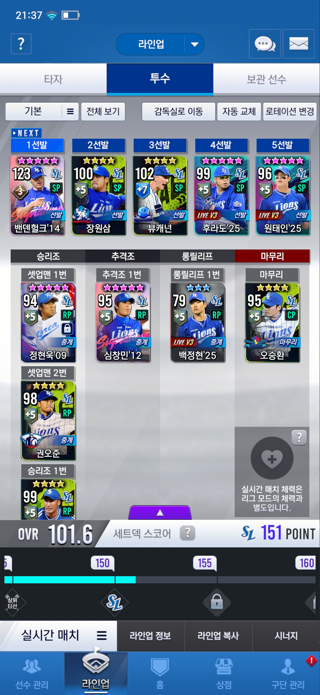 현재 라인업이 이런 상태인데 최형우 이승엽 오승환 최충연 중에 뭐가 맞는 판단일까요