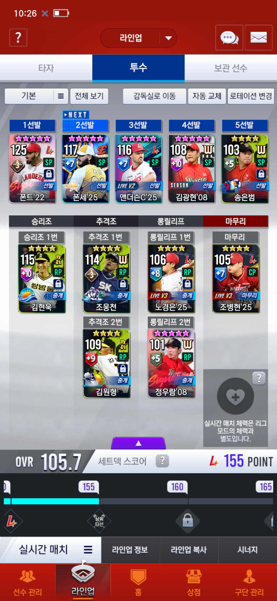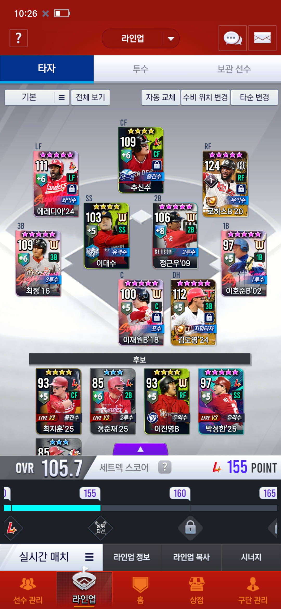 덱이 이 상태인데 18 양의지가 떴습니다. 재조합 해야 할까요?