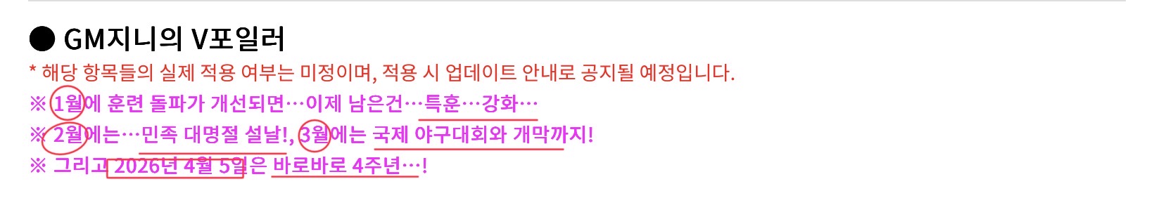 의미: 개발자노트는 3월에 알리겠다.