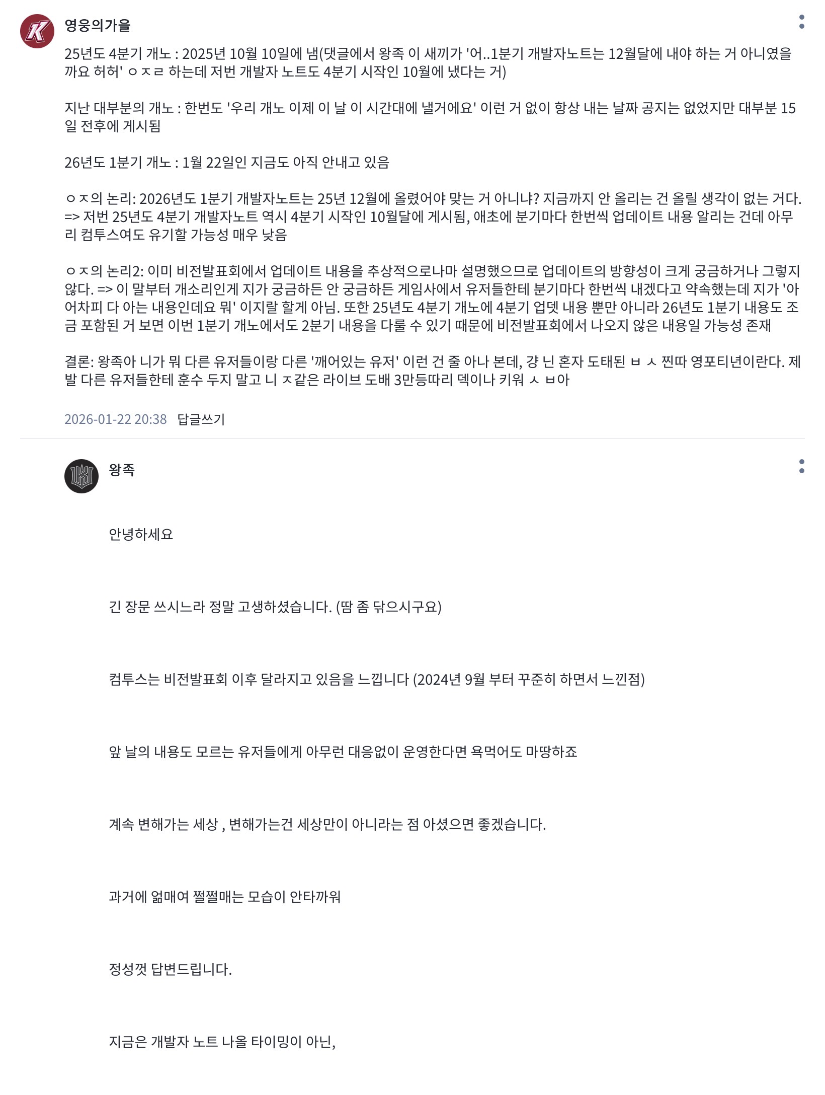 개발자 노트 안나온다 발언한 부분 사과의 말씀드리겠습니다.