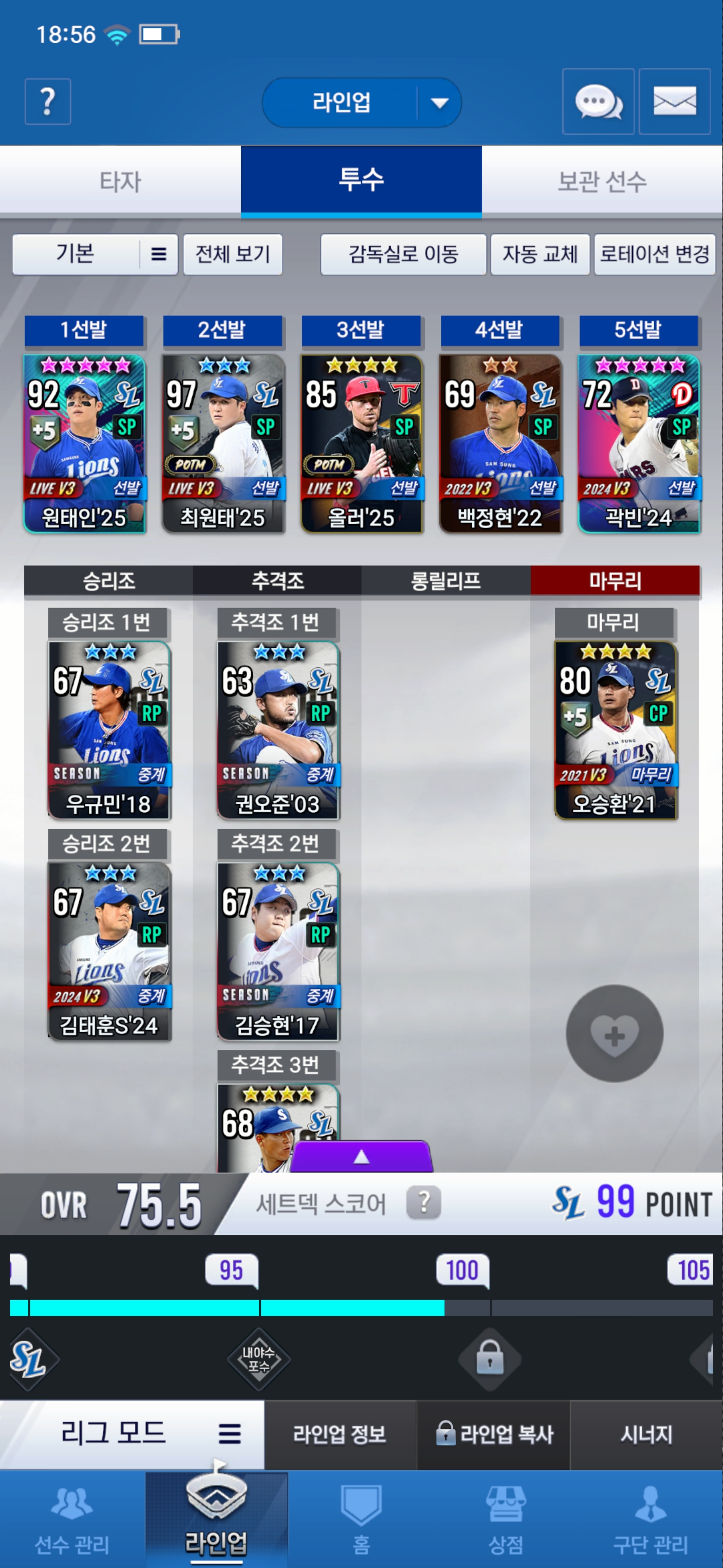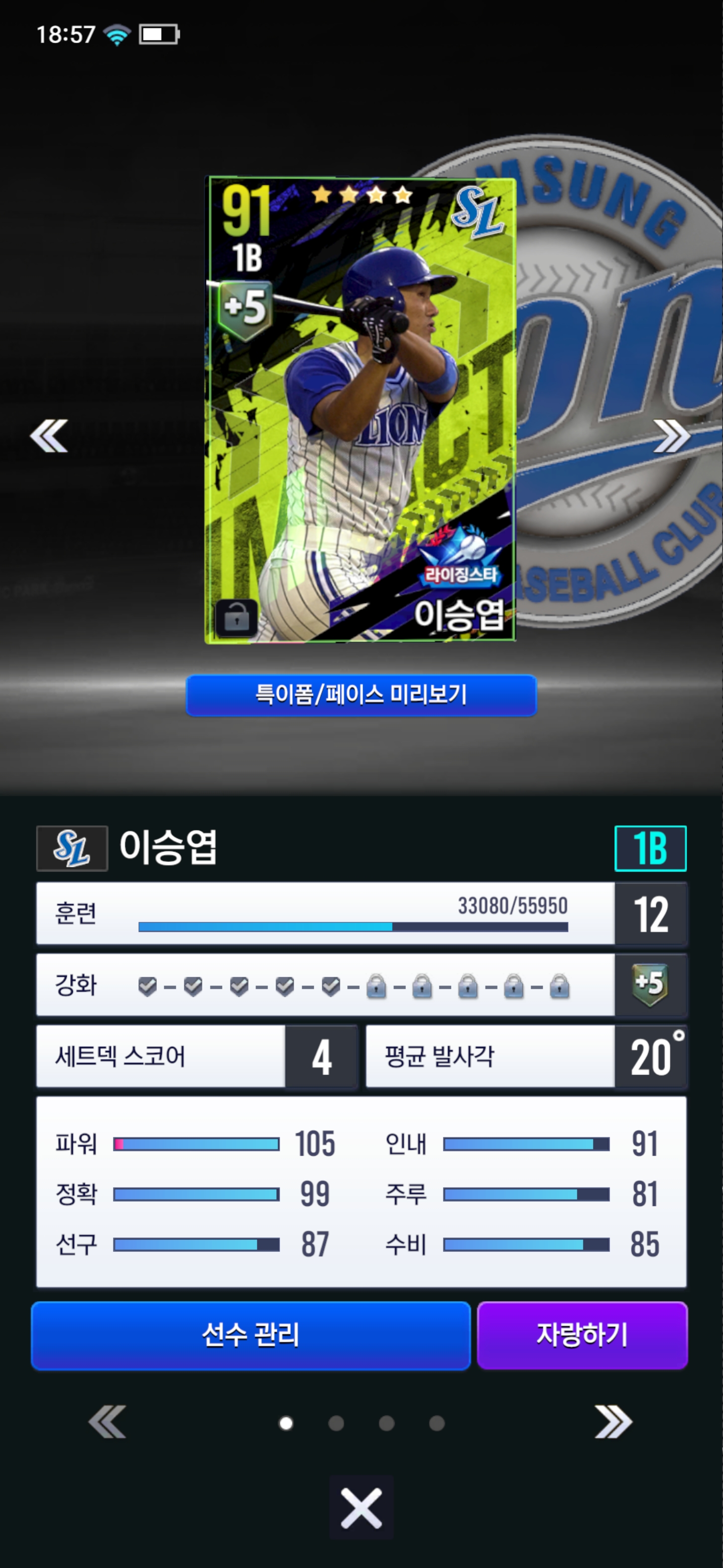만든지 하루 되었고 리세는 아무리 돌려도 라이징스타 이승엽이 최선 이어서 만들었습니다