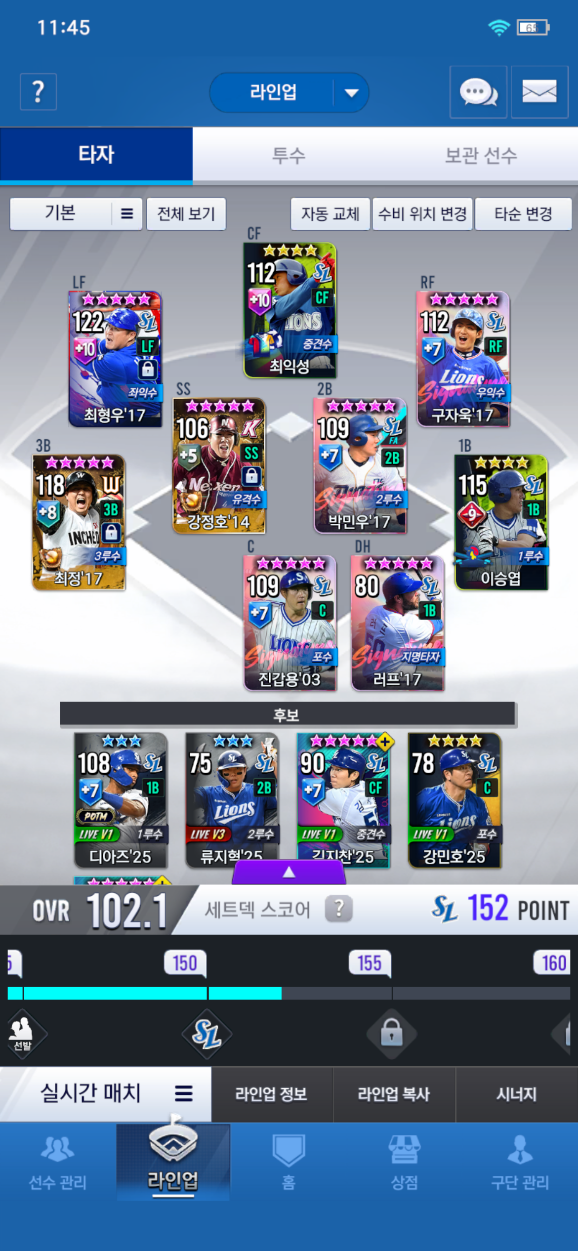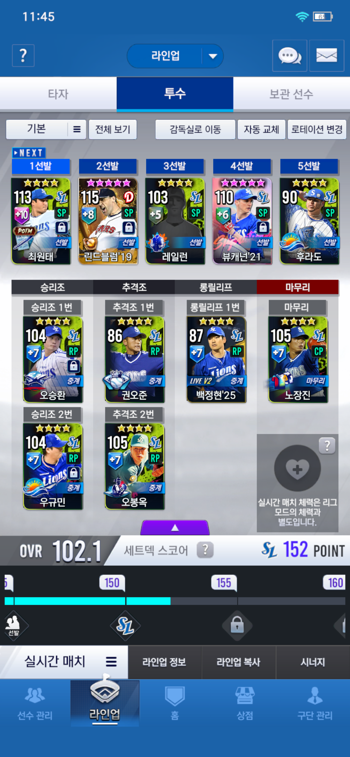 지금 17삼성덱으로 짜고 있습니다 아직 안 키운 애들을 넣어 놓았고 타자는 이승엽 베포와 포수 17강민호 fa 하면 완성된다고 생각합니다 투수가 문제여서 조언좀 부탁드립니다