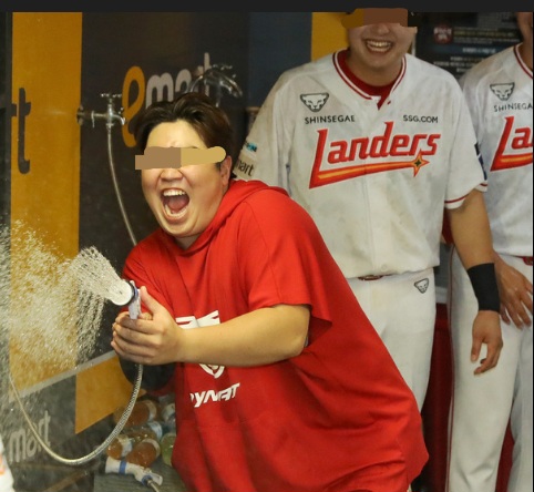 (타팀팬 인데 로운이형 짤 써야 될것 같습니다 SSG 팬분들 죄송합니다.. 진짜 이 짤은 최고 입니다.. 저거 얼굴은 저작권 때메 가린것 이니 이해 해주세요.) “야 지웅아 물세례 맞고 싶냐?”