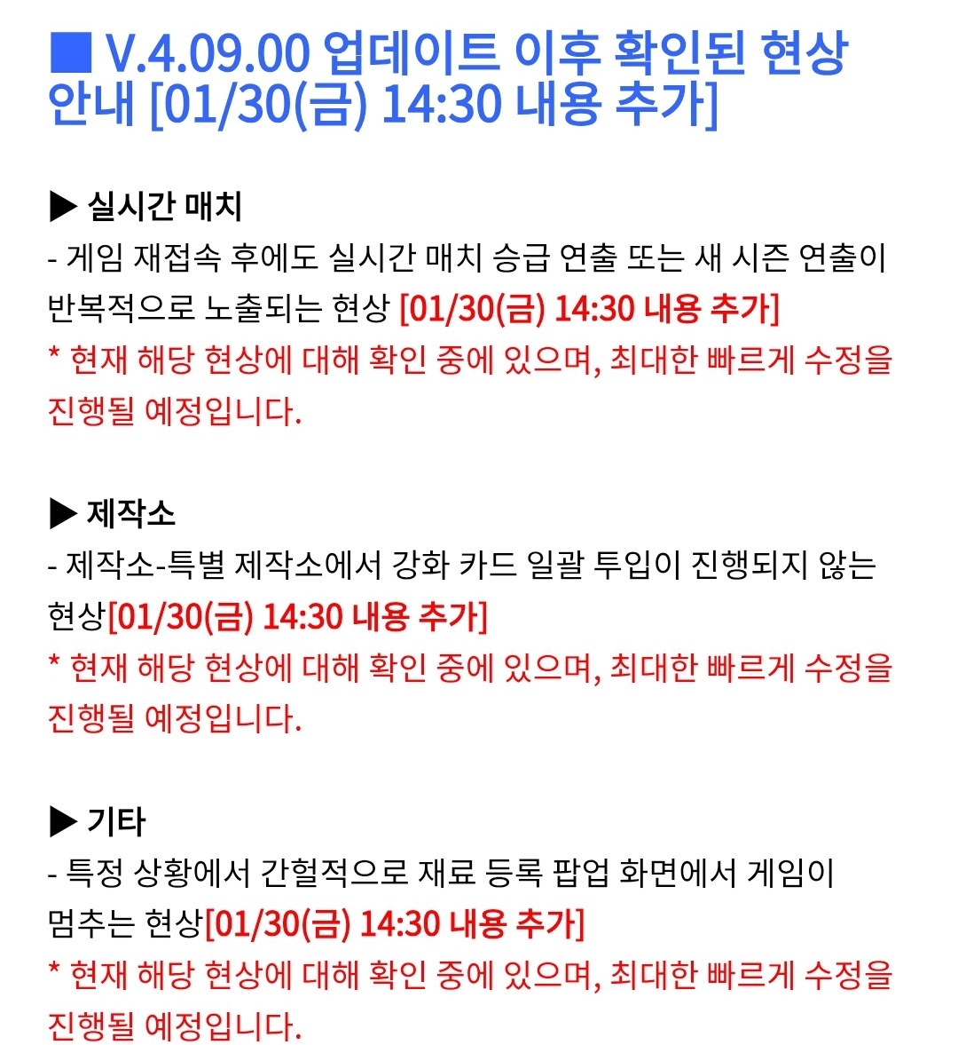 이유는 모르겠지만 업데이트 점검도 미룬이유가 완벽하게 점검하기 위한거 아닌가요???