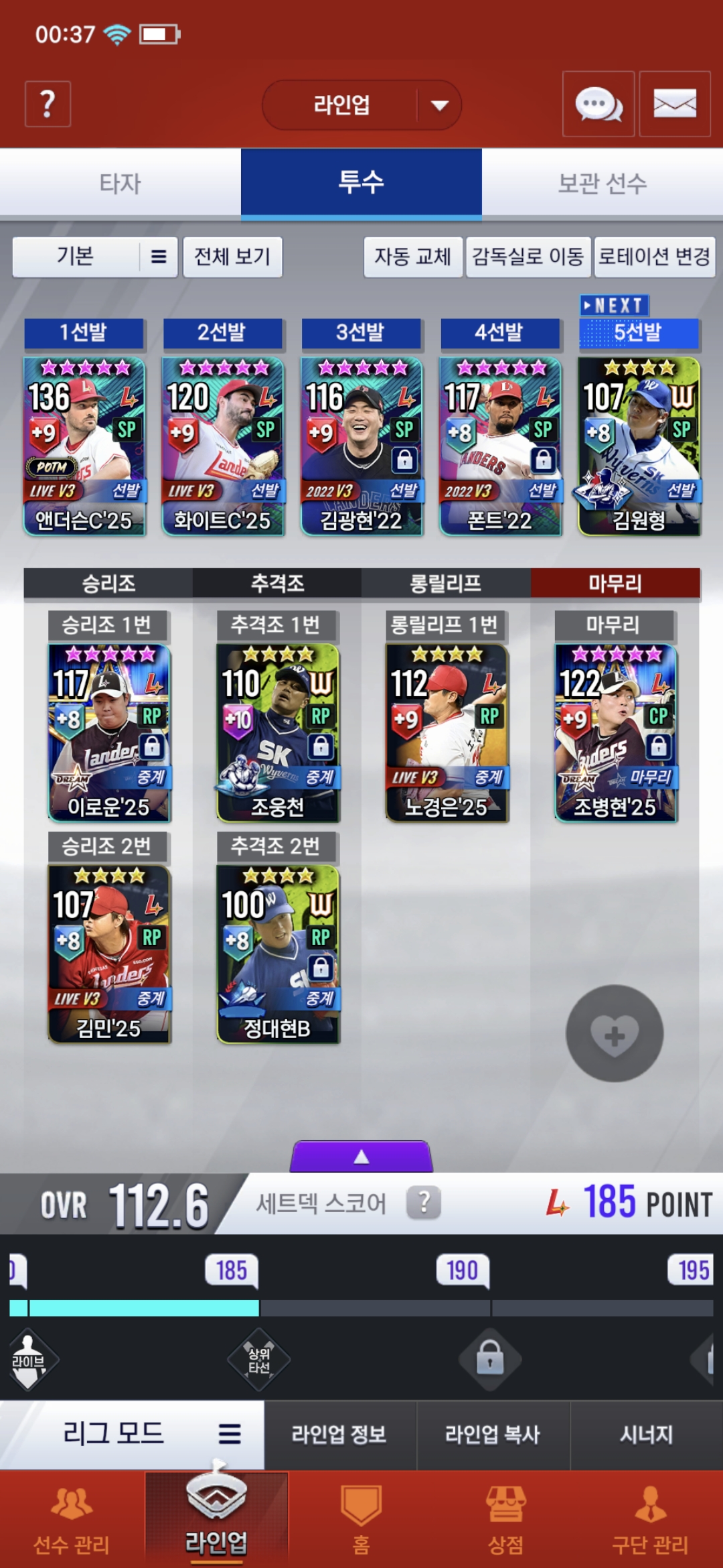 실대에서는 김원형 쓸거같은데 주로 리그모드 많이 해요
