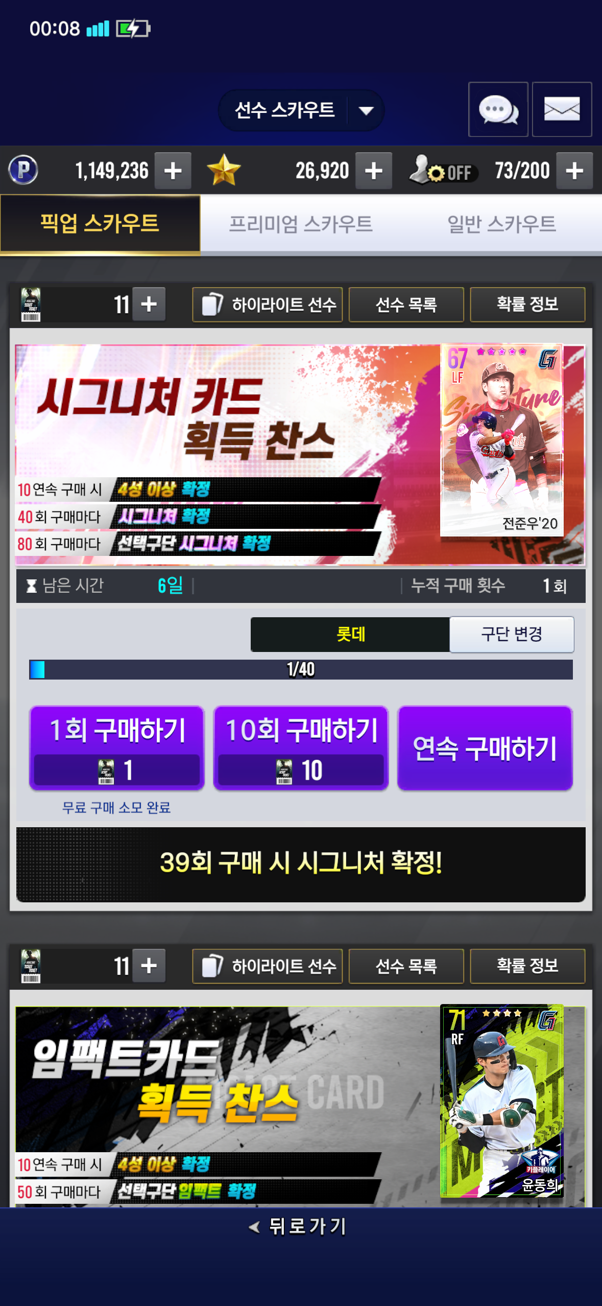 이번 픽업 스카우트에 전준우 나왔는데 뽑는게 나은가요?? 좌익수 똑같은 20 전준우 쓰고 있는데 각성용으로 뽑는게 맞을까요?? 뉴비라 잘 몰라서 질문드립니다!