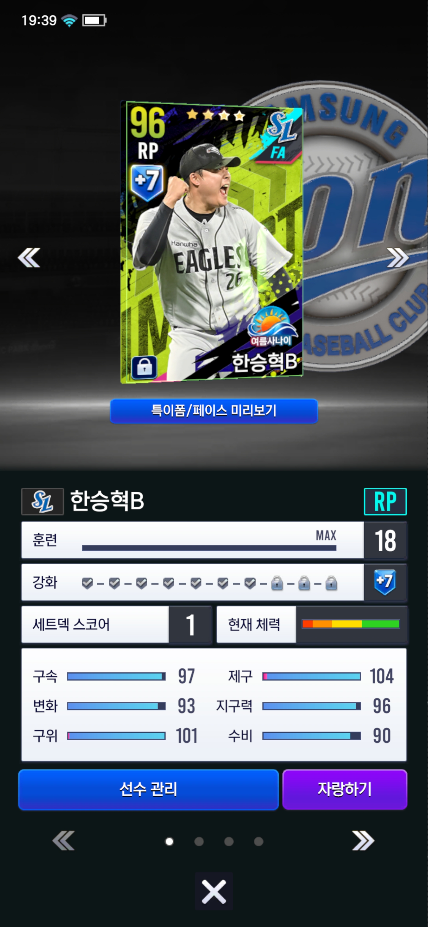 저번에 미쳤었는지 가진 임팩을 전부 조합으로 갈아서 겨우 이걸 건졌는데 그와중에도 정신을 못차려서 FA까지 돌렸었습니다