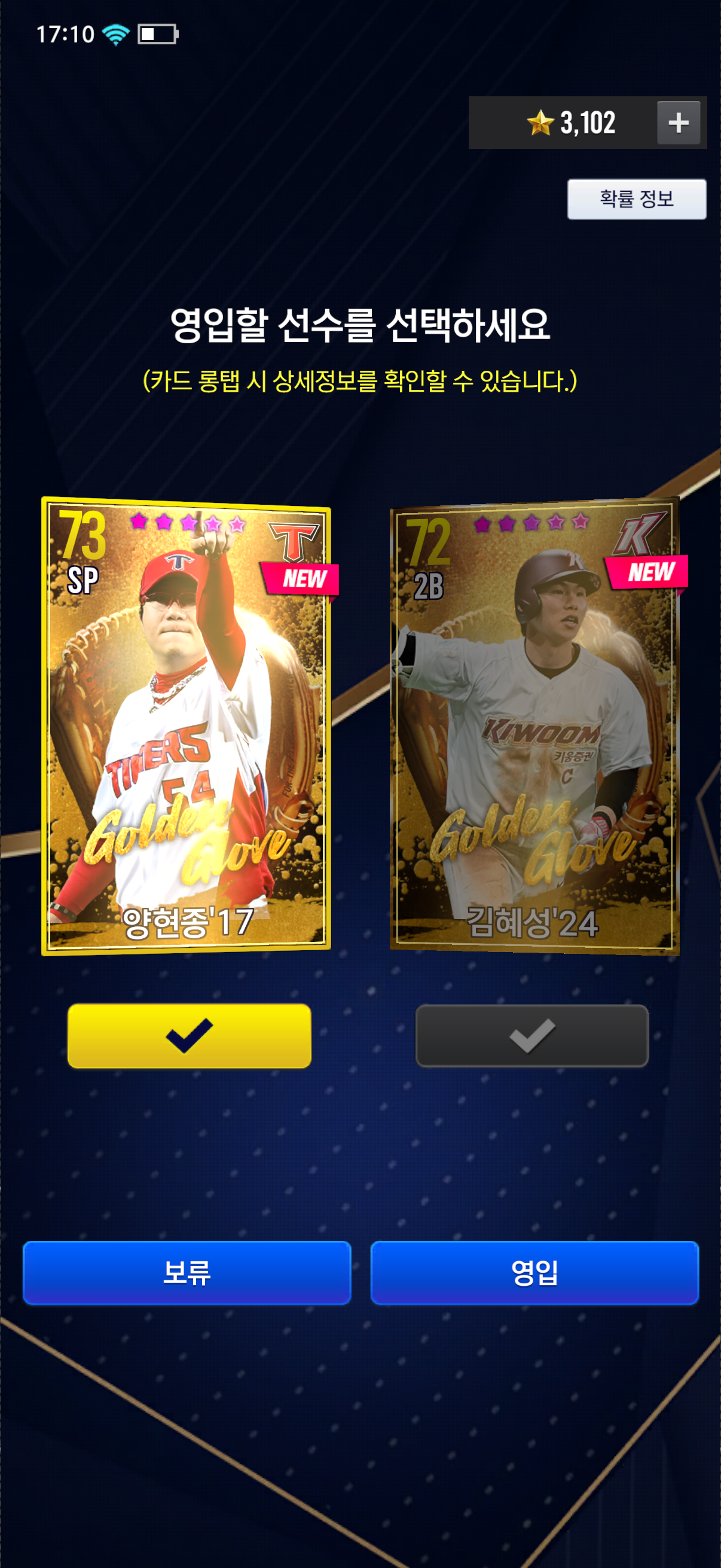 골든글러브 양현종 김혜성 나왔는데 누굴 뽑아서 써야 할까요? 아님 교환 해야 하나요 둘다?