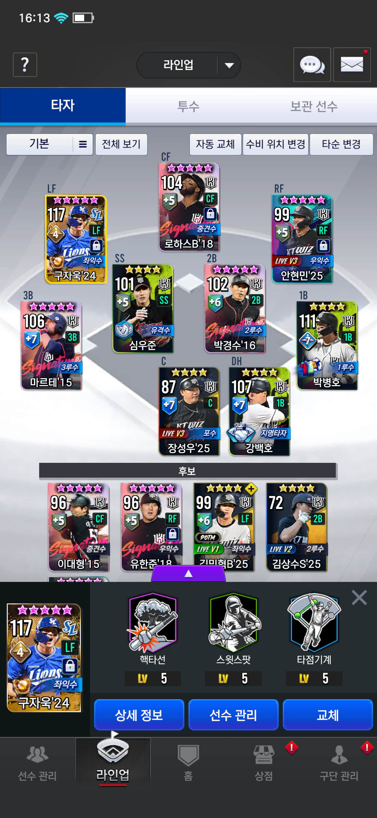 현재 좌익수 4각 구자욱쓰고있는데 3차교환 폰세로 바꾸고 좌익수 자리에 14최형우 써도되나요? 좋은방향 제시 부탁드립니다ㅜ