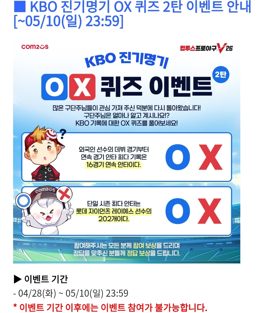 12-1 KBO OX퀴즈 1탄 (04/28 보상지급)