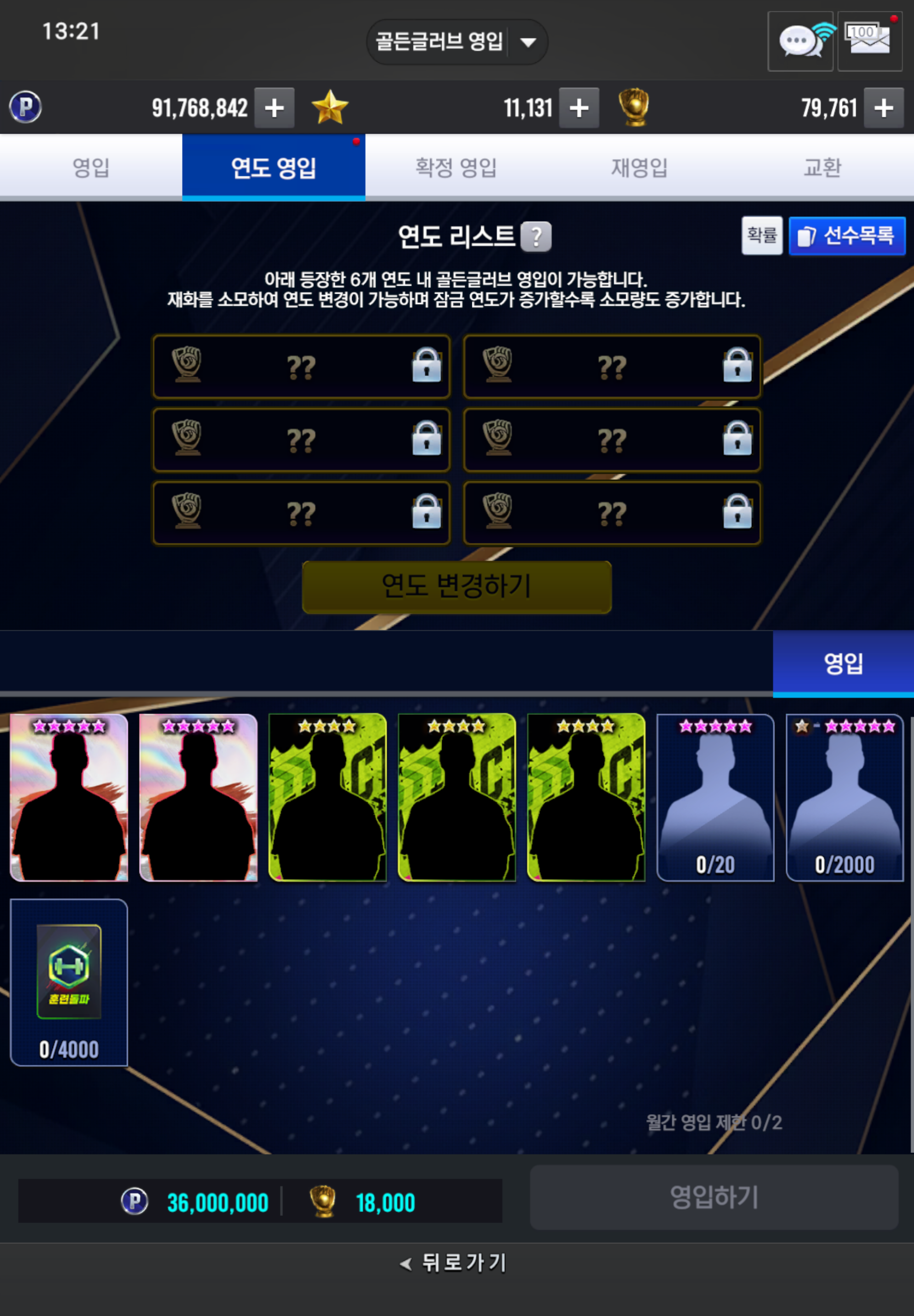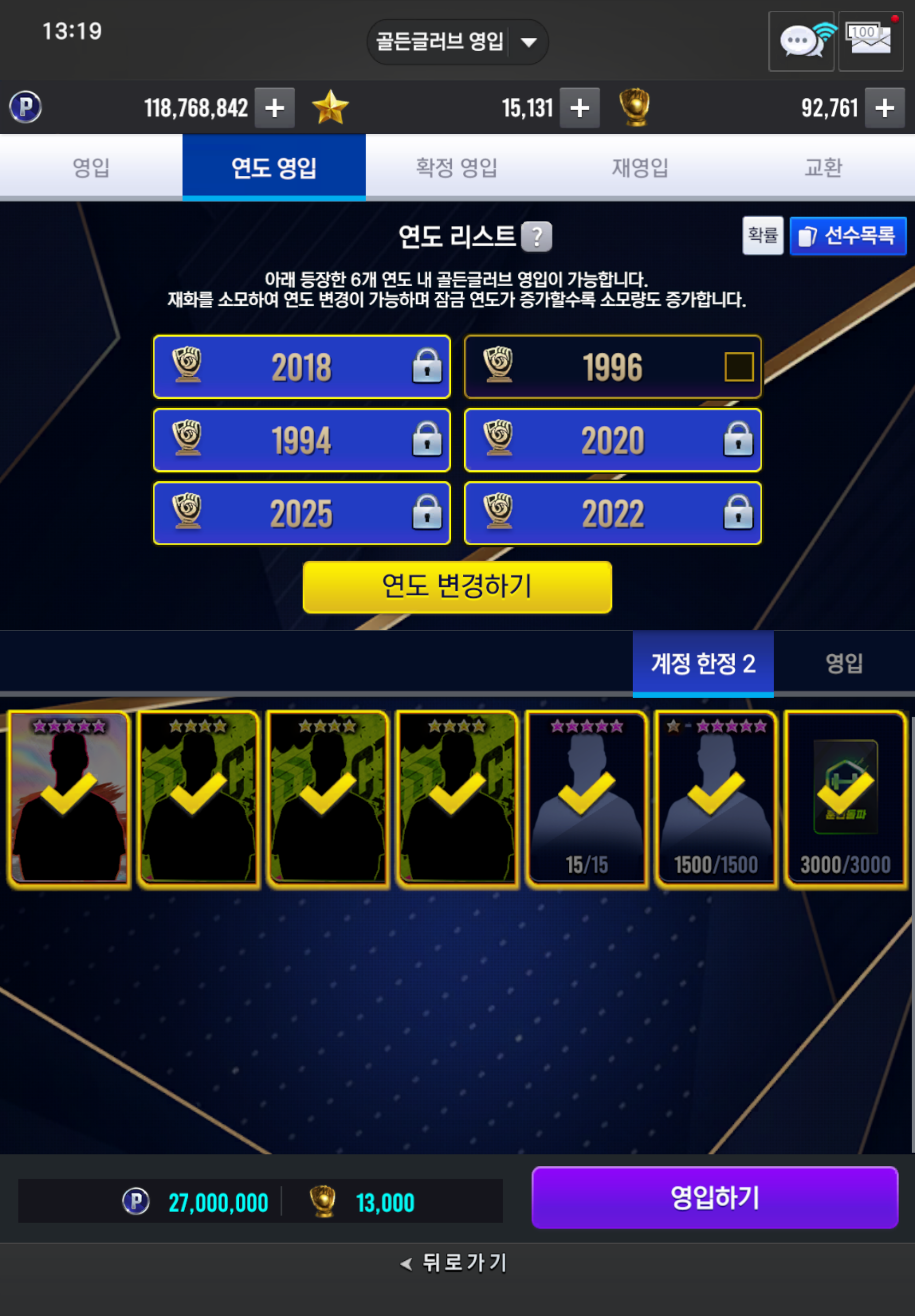 [무과금 왕족] 골든글러브 연도영입 “ 계정 한정 2 ” 뽑았습니다 → 15번째 골든글러브