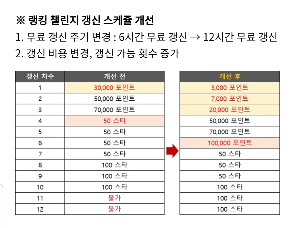 자정 갱신, 오전6시,정오, 오후6 (월요일 제외) 3회 무료 갱신중 2회가 포인트로 갱신하라는게 갱신 횟수 증가? 인가