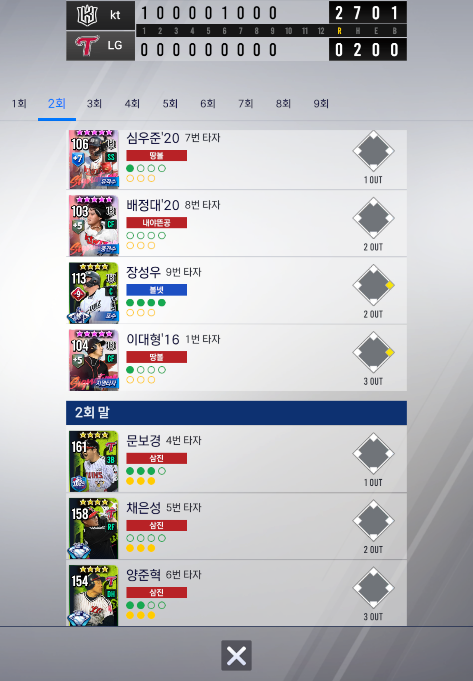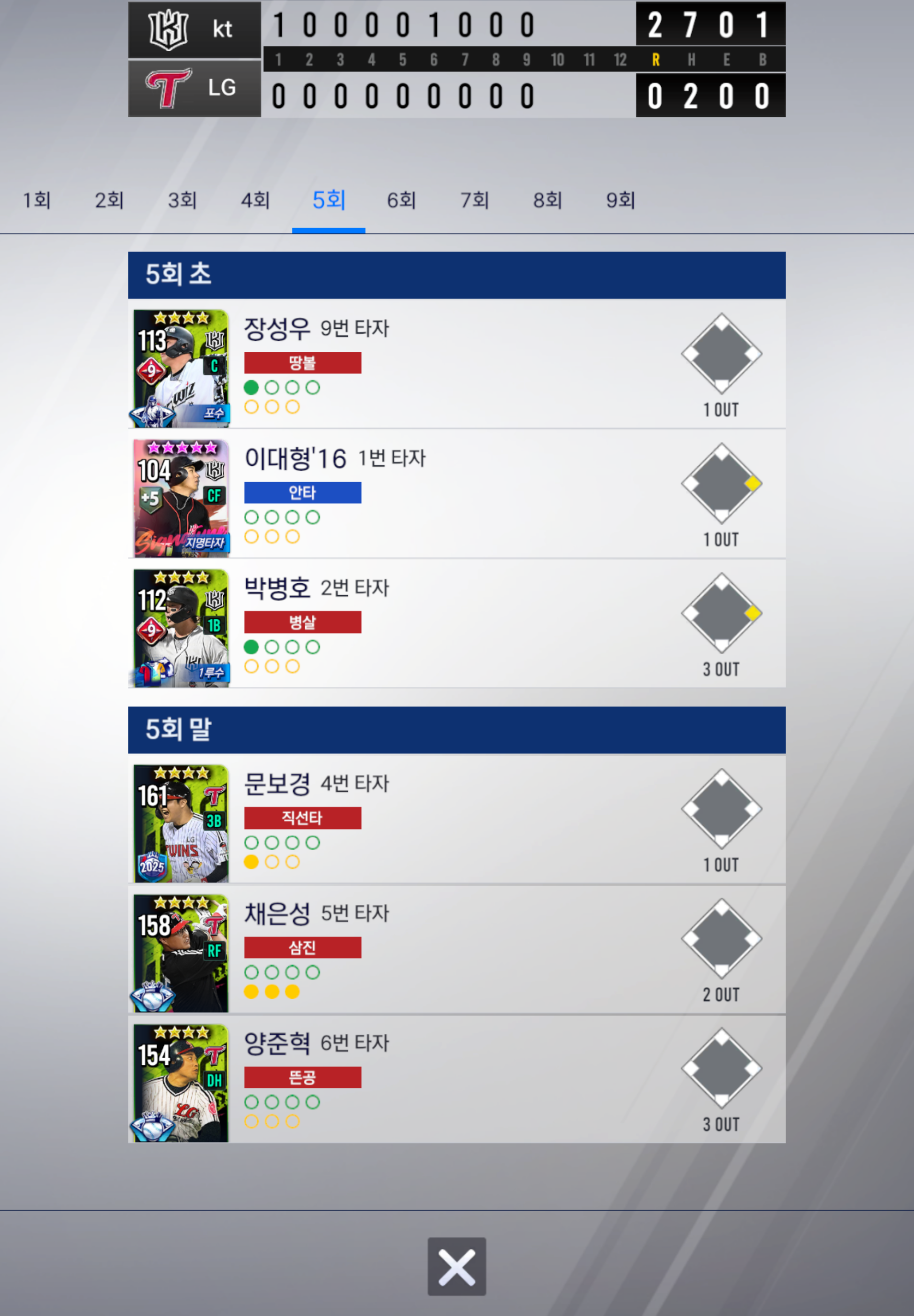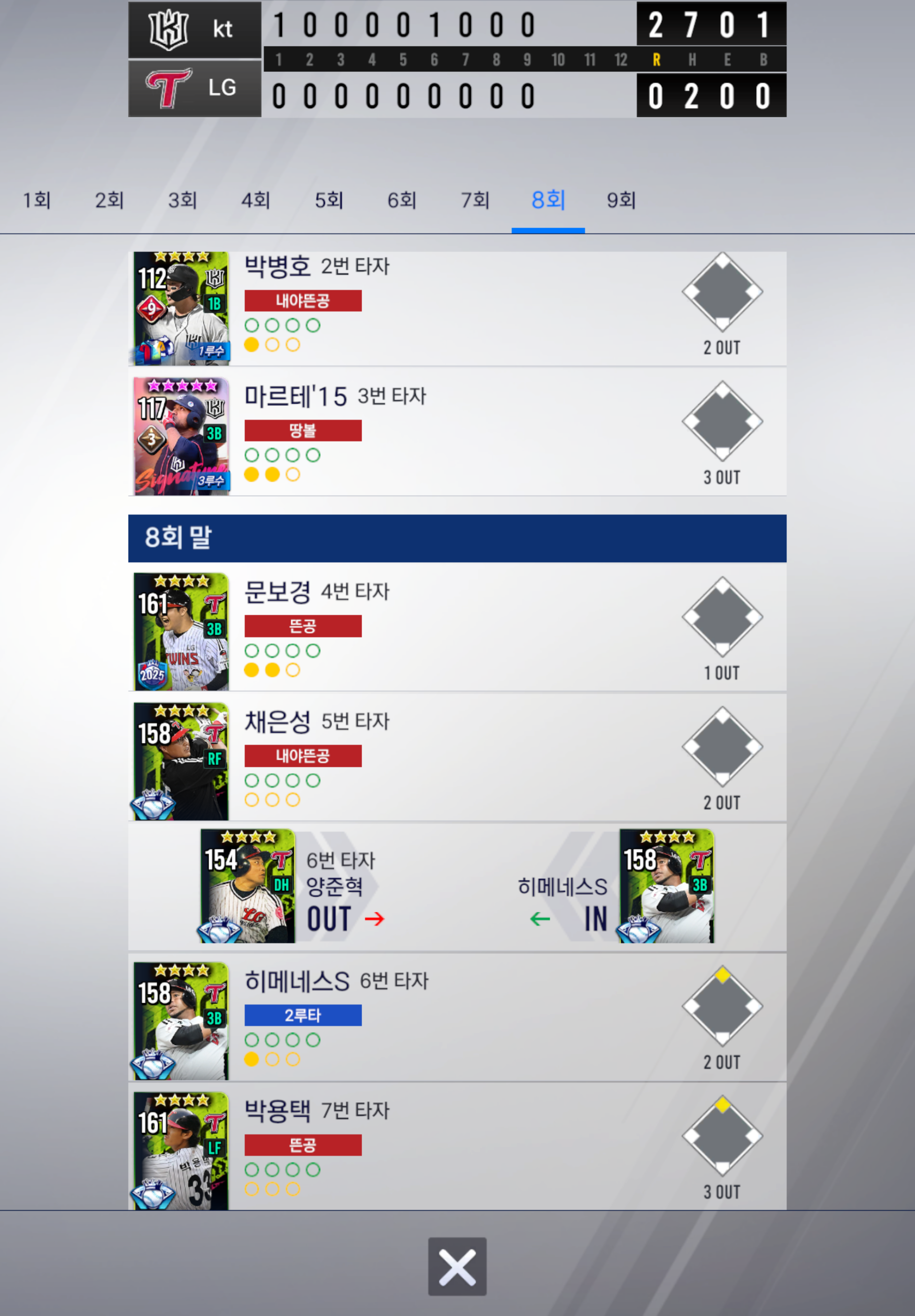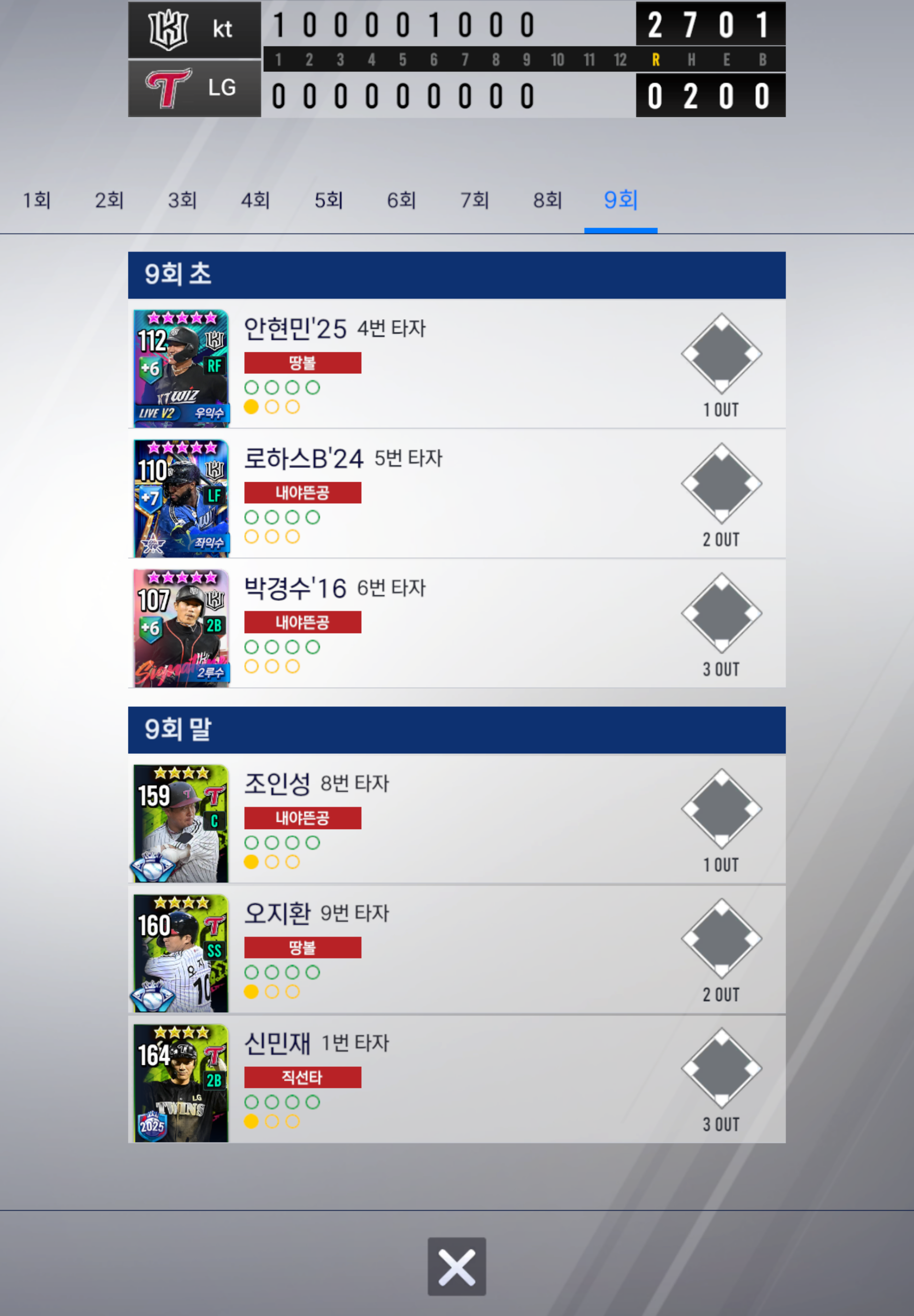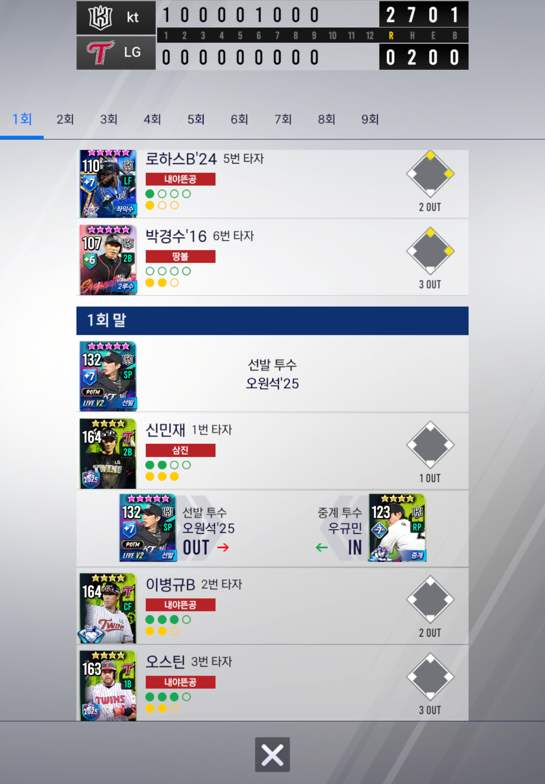 9회 말까지 교체없이