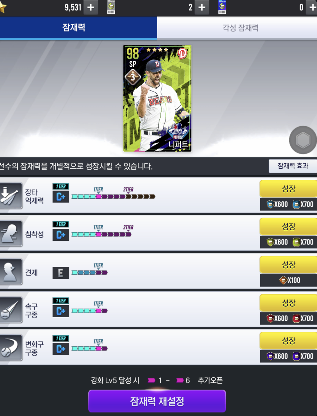 니퍼트 잠재력이 이렇게 떴습니다. 장억 SR 침착성 S.