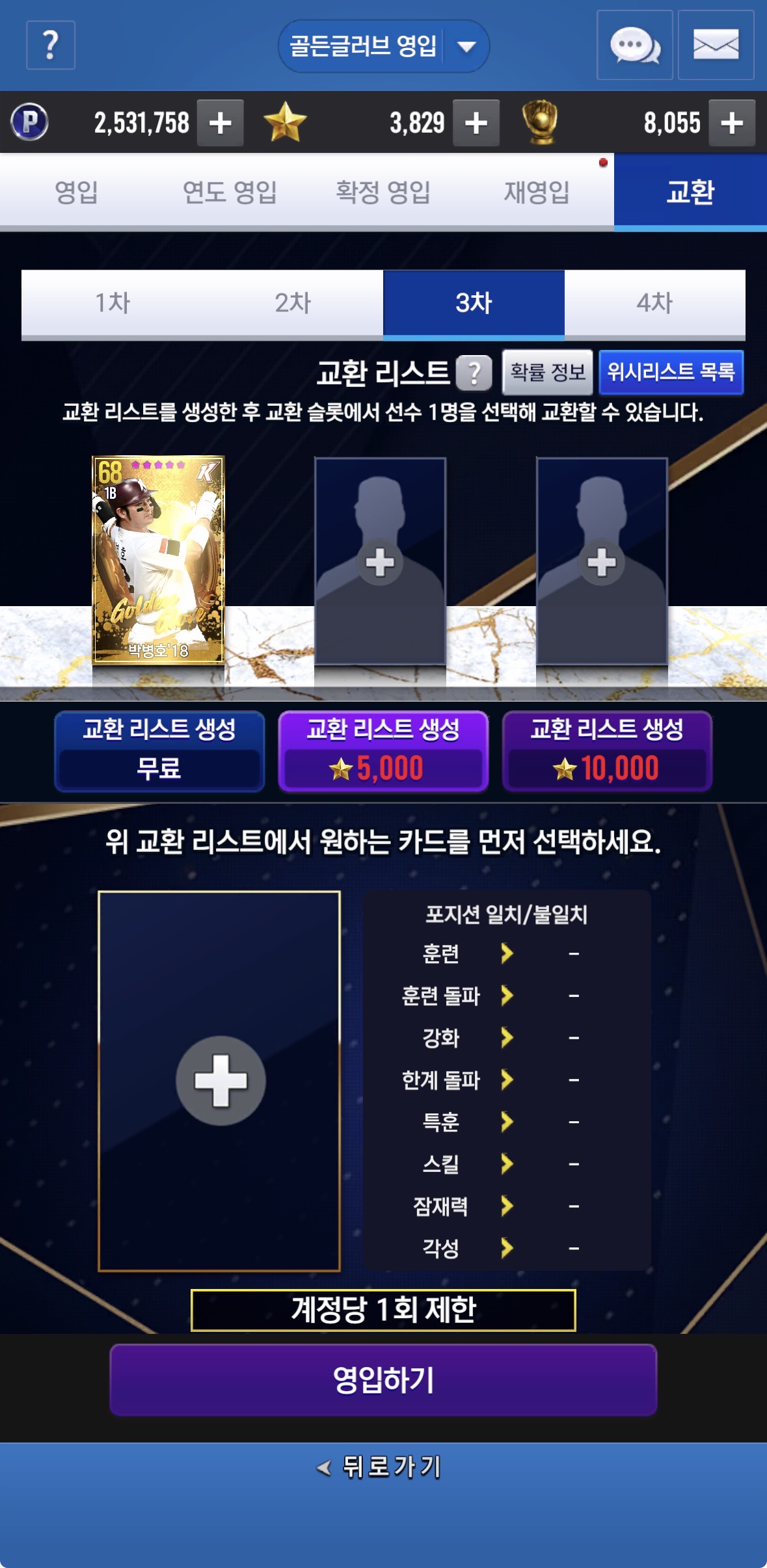 첫번째 칸에서 18박병호가 떴는데 그냥 바로 먹을까요?? 무과금이라 스타 15000개 모으려면 한참 걸릴 것 같은데 어떻게 할 까요??