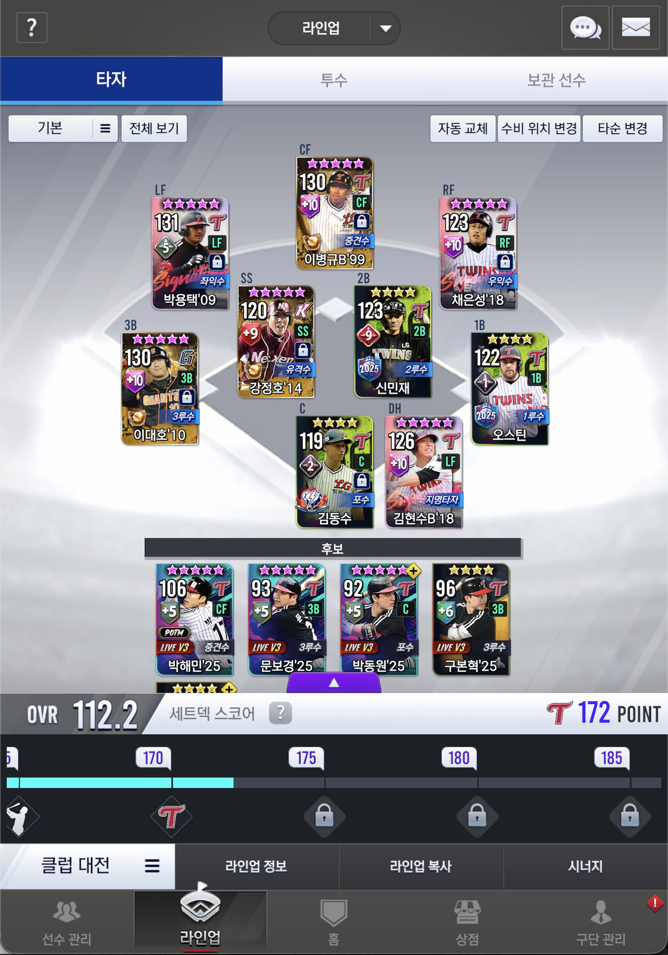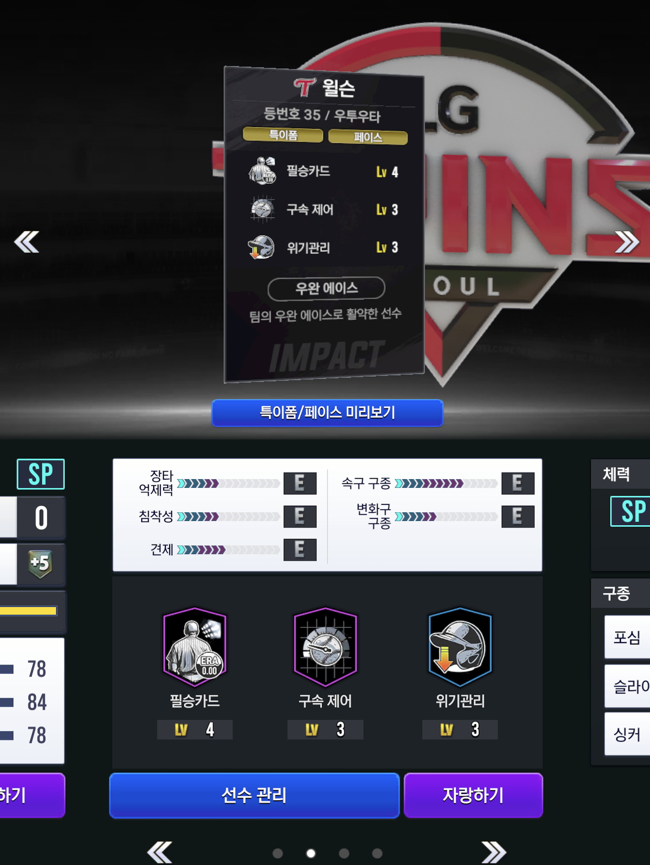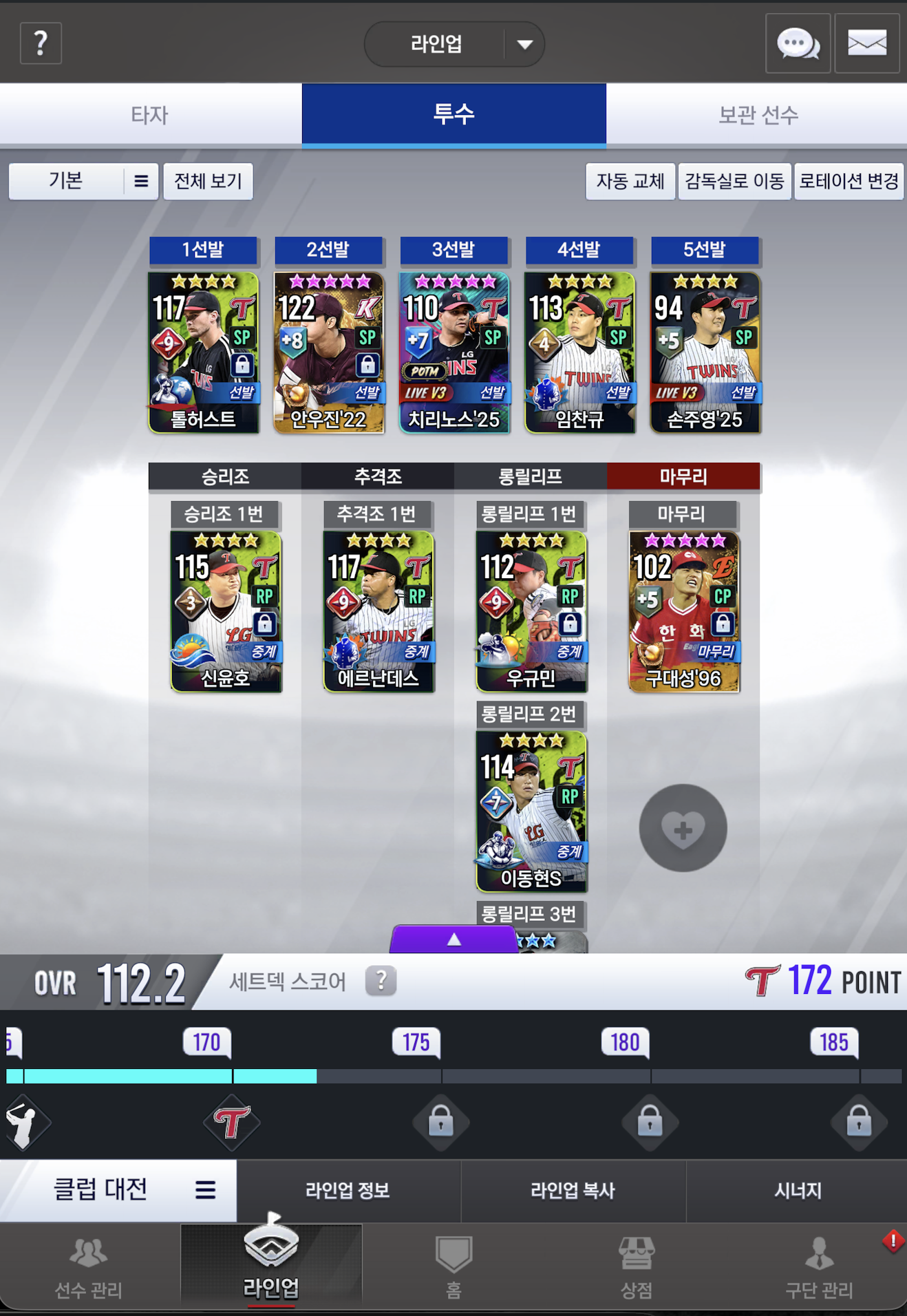 라인업 확장은 시그만 하나 넣으면 되고 투수는 많은데 셋덱때문에 아직 못넣고 못 키우고 있어요.