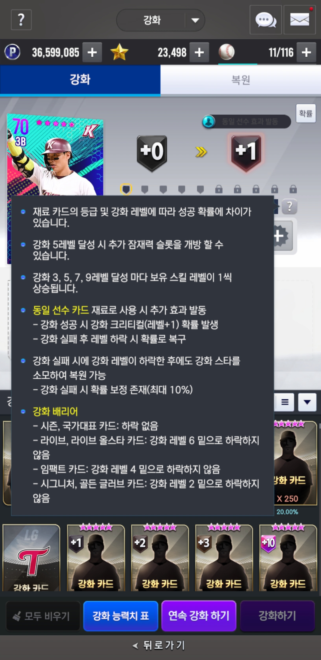 블러 처리되어 잘보이지는 않지만 24 v3라이브 송성문 강화시 문구