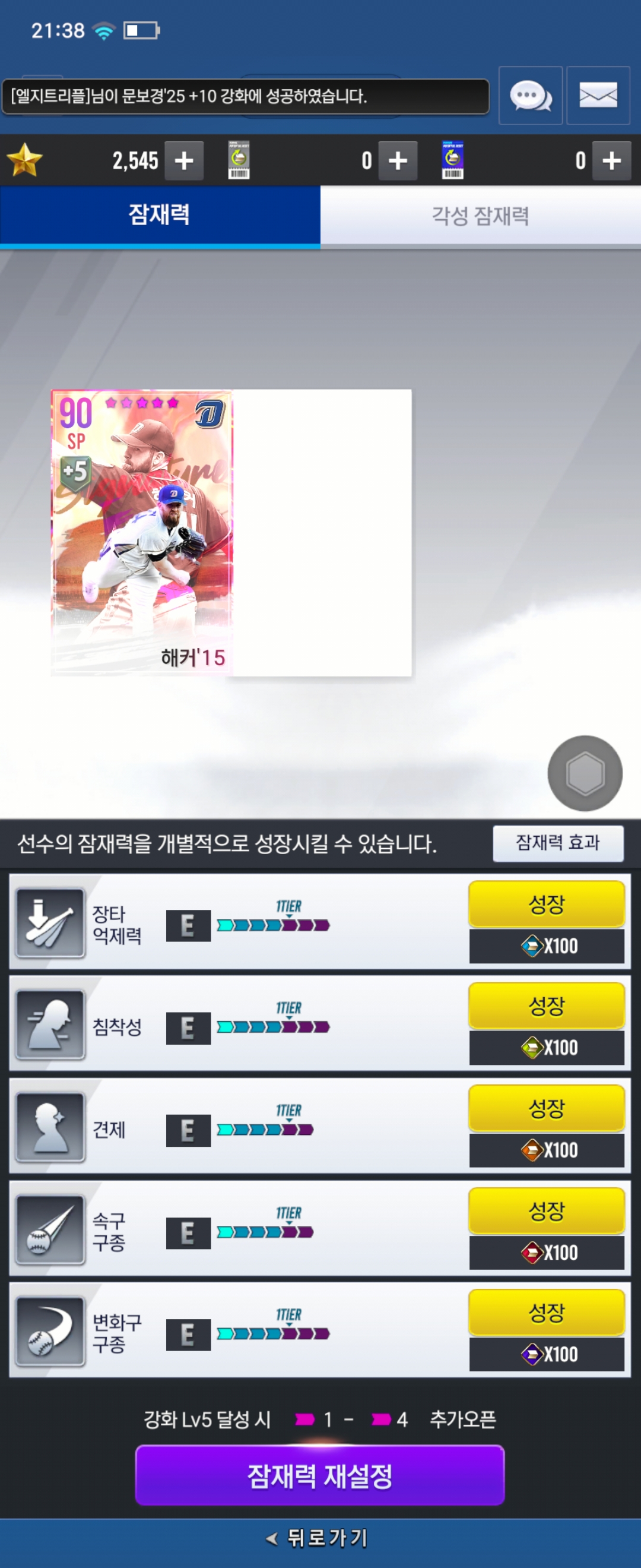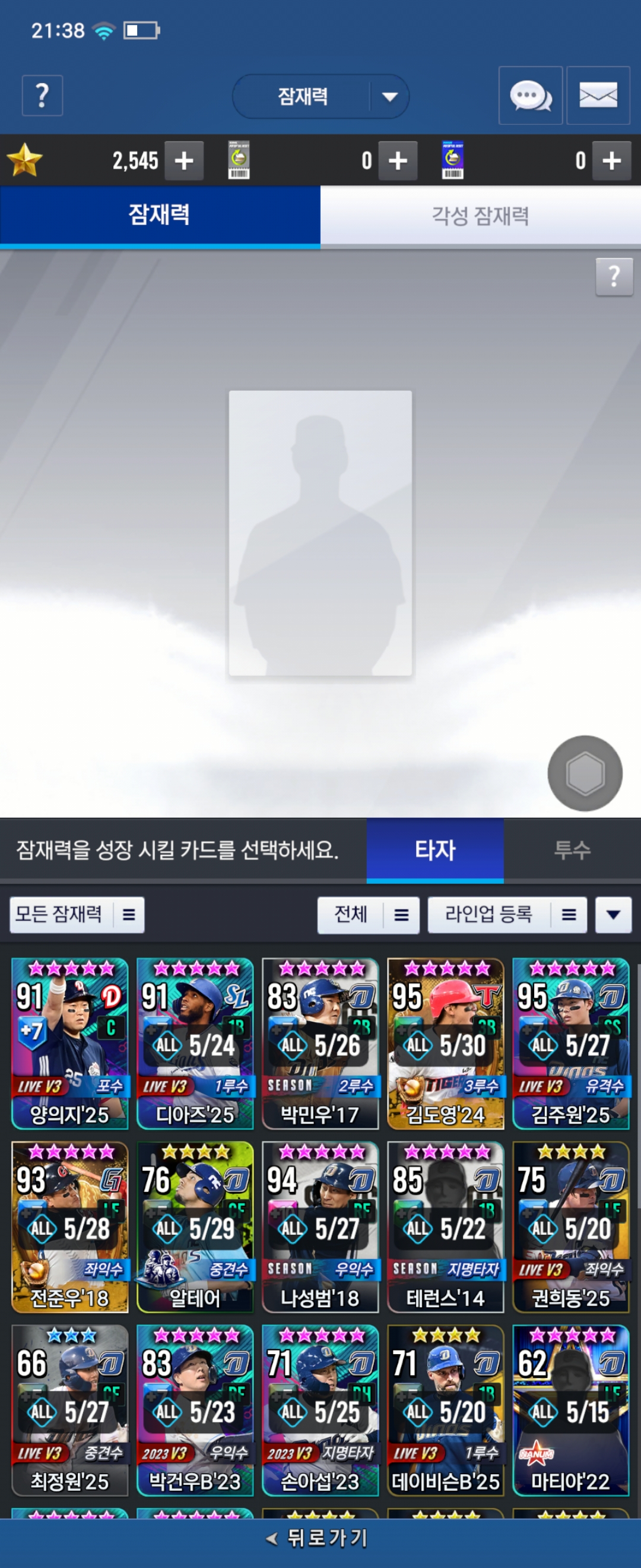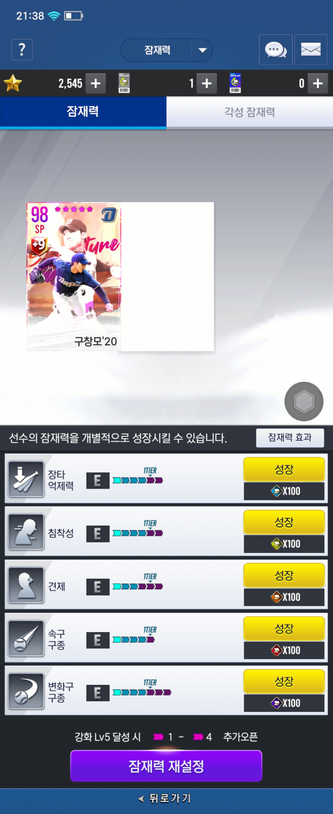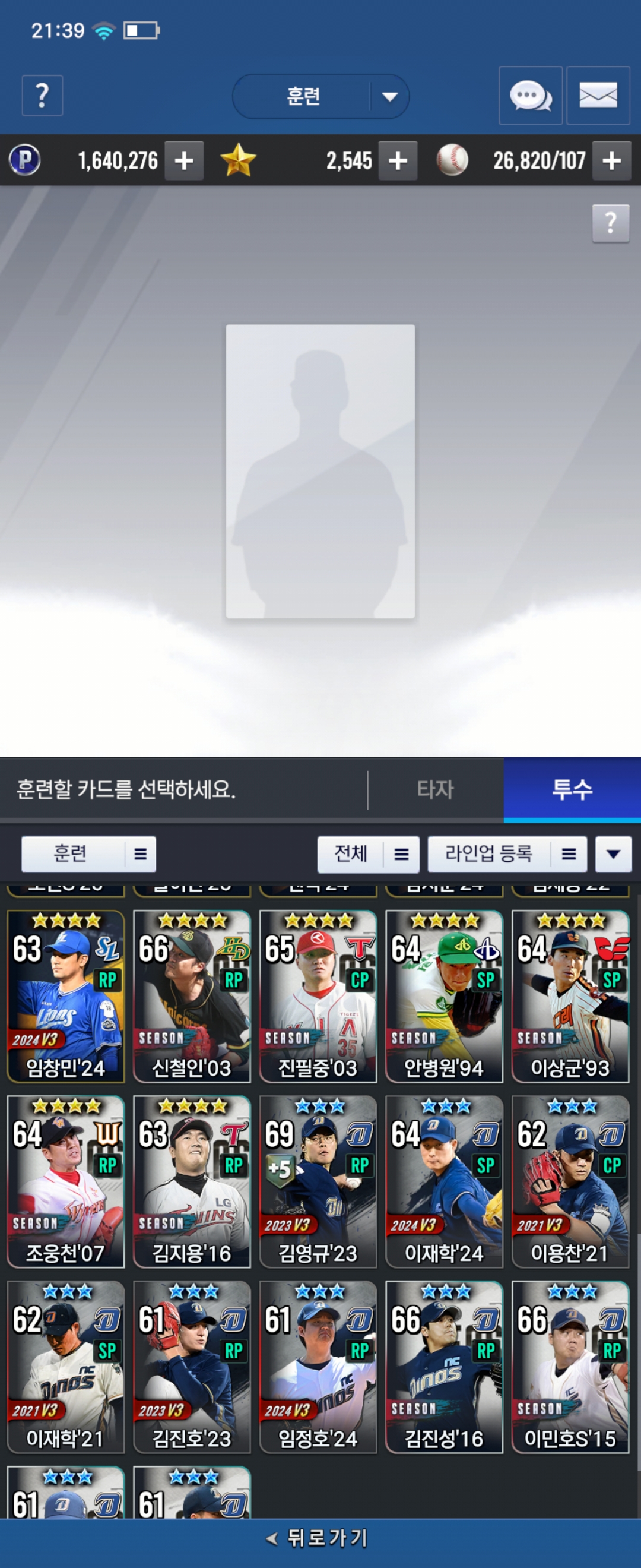 Nc 부계인데 훈련 상태랑 잠재 칸도 안뜨고 선수카드도 이상한데에 뜨고 이러네요.. 홍지웅 ㅡㅡ