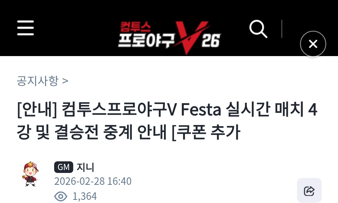 그리고 대회 당일이 아니라 전날이나 그 이전에 중계를 볼수있는곳과 시간이 안내되면 더 좋았을것 같음