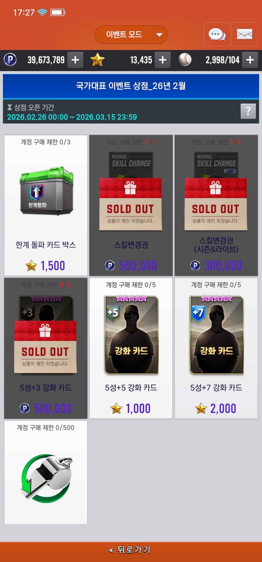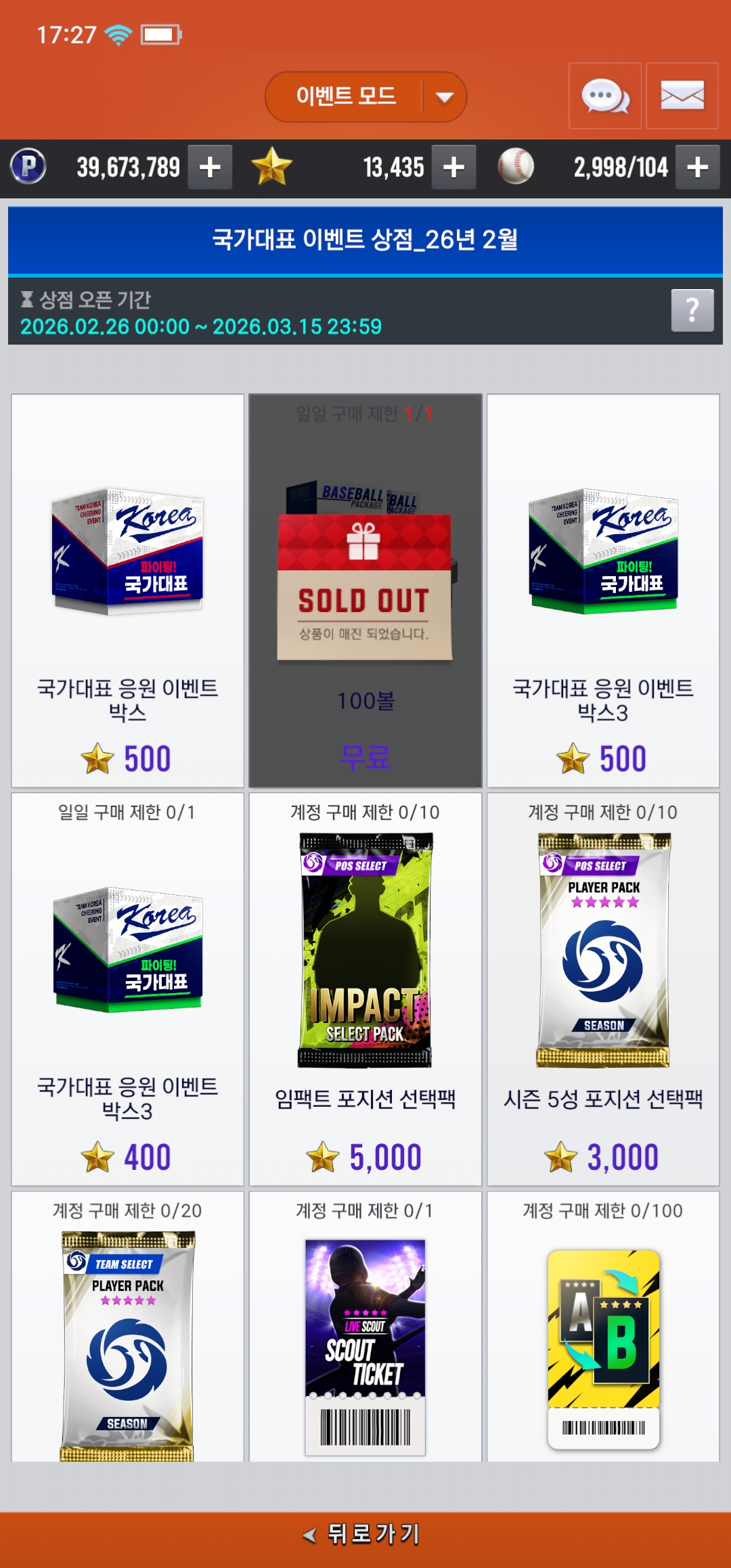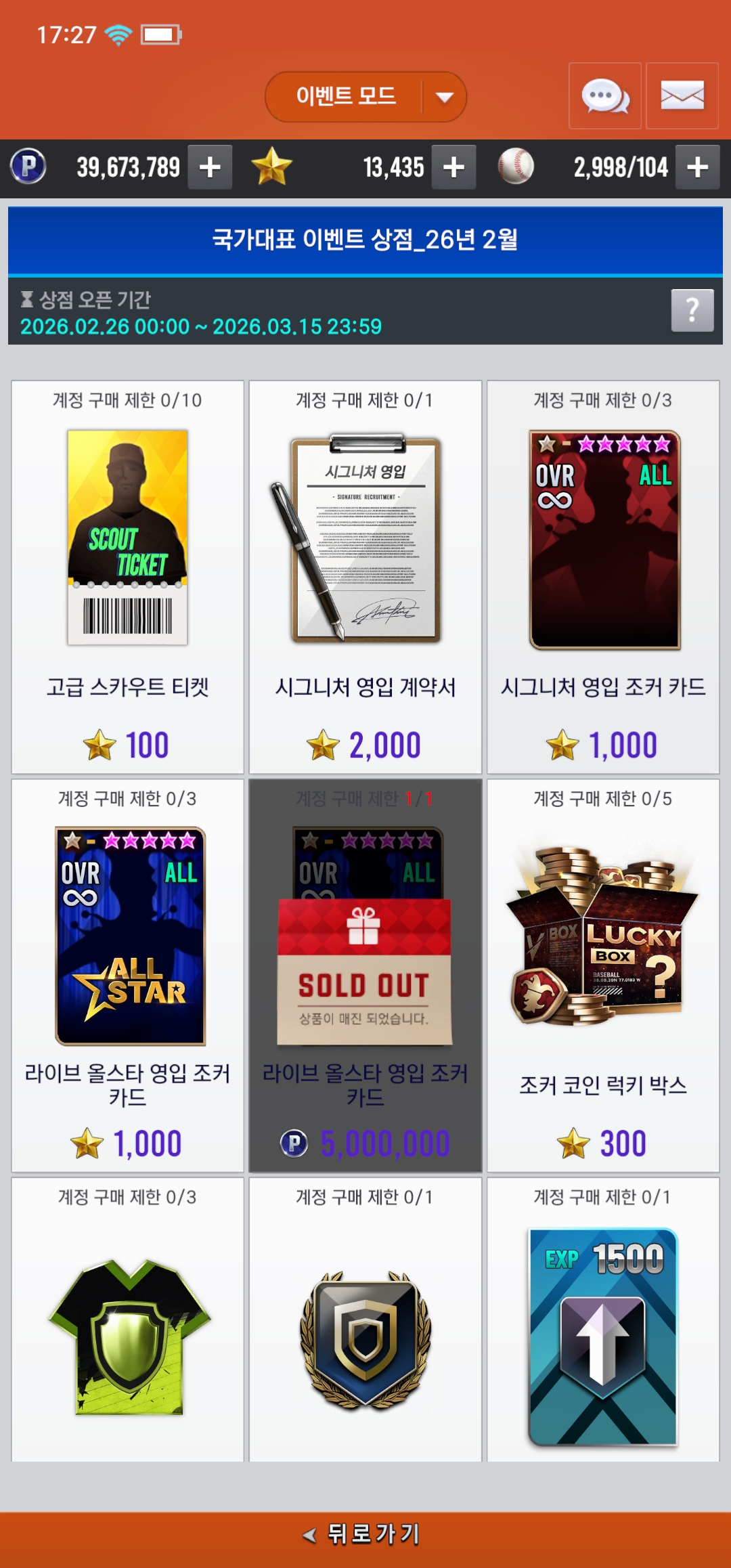국가대표 이벤트 상점 뭐 사는게 좋을까요?