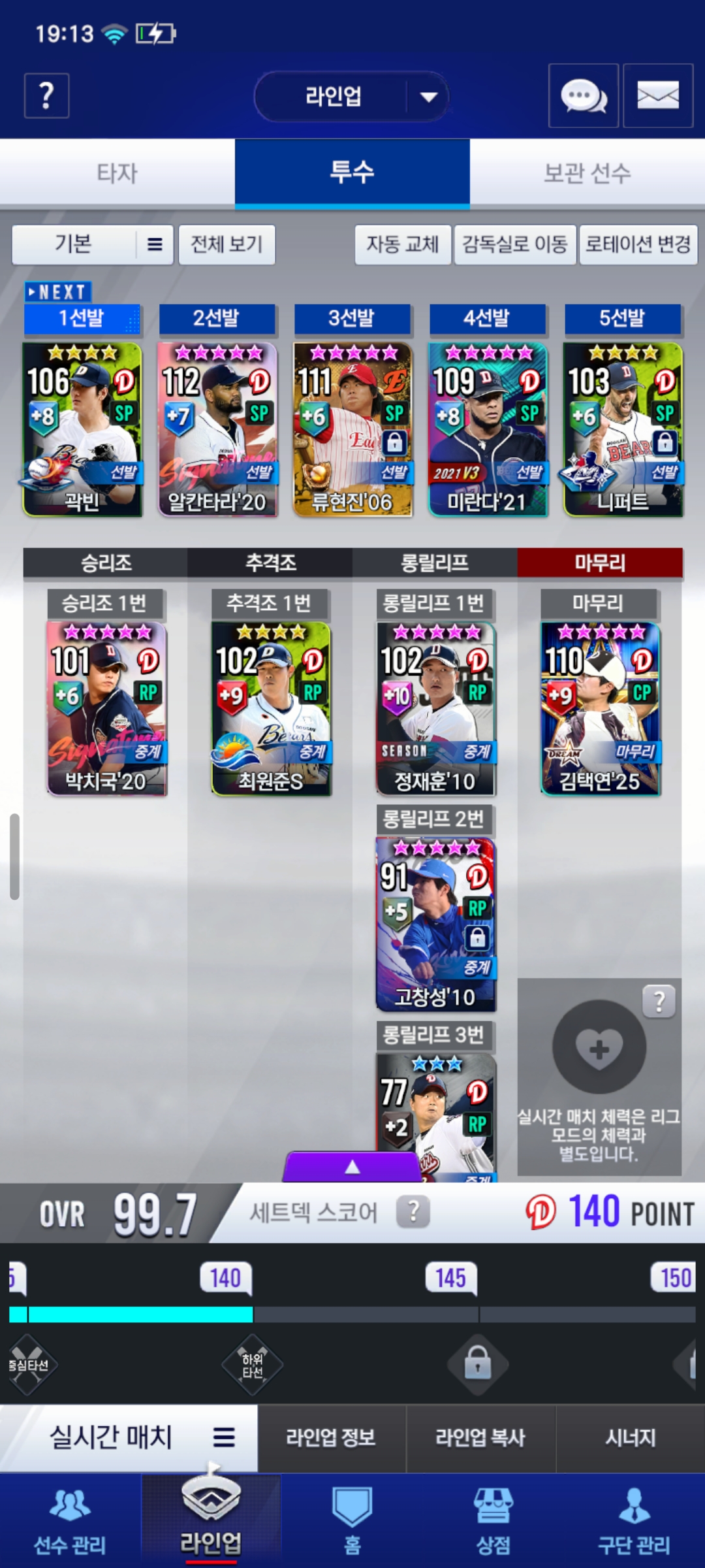 시선팩으로 18재호나 01심재학이나 12홍상삼 중에 하나 할라는데 추천좀