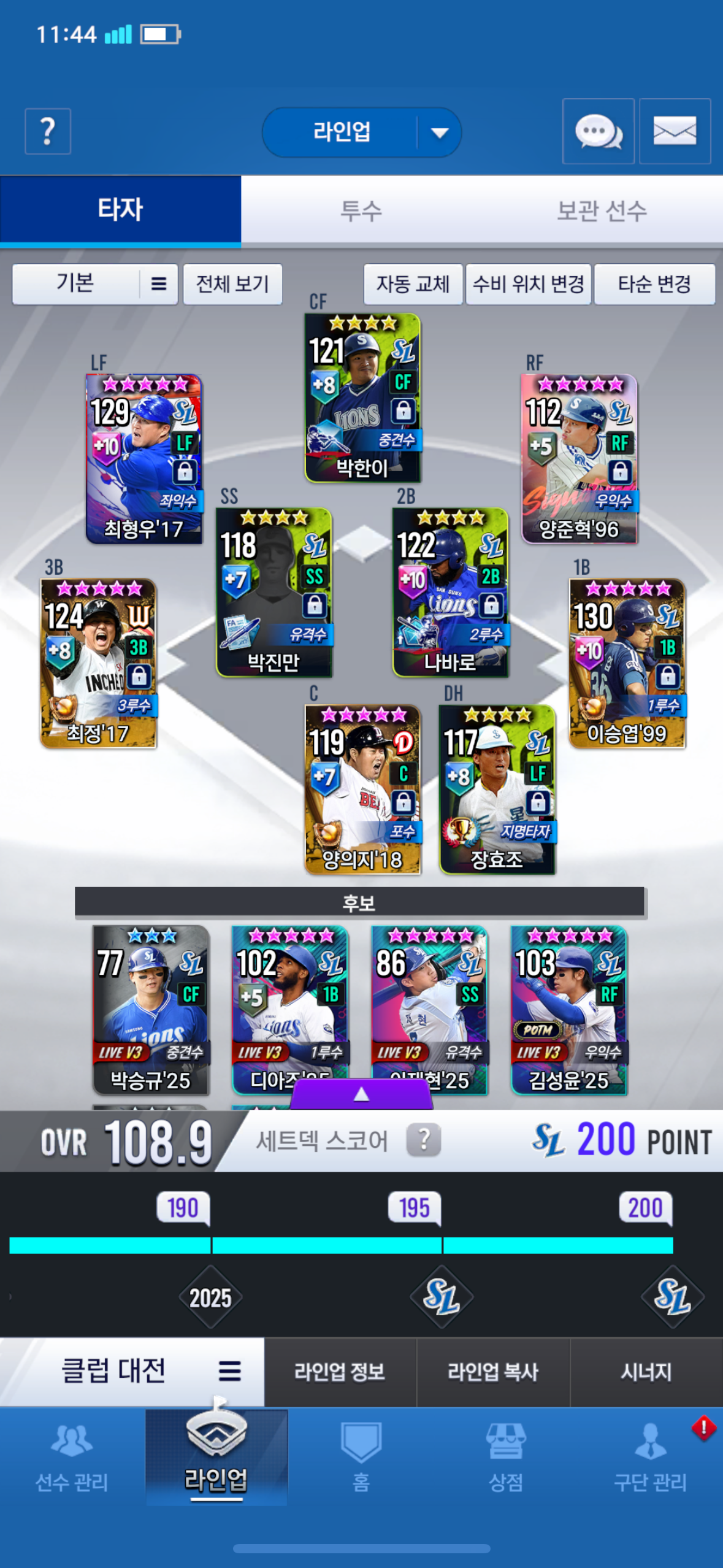 연도는 일단 최정,최형우 때문에 17입니다. 지금 이승엽10강 1루에 쓰고있고 들고있는 카드가 시그 양준혁,18골글 로하스,18시그 러프,17시그 러프 있는데 1루,우익,지명에 뭐가 들어가는게 좋을지 골라주세요.