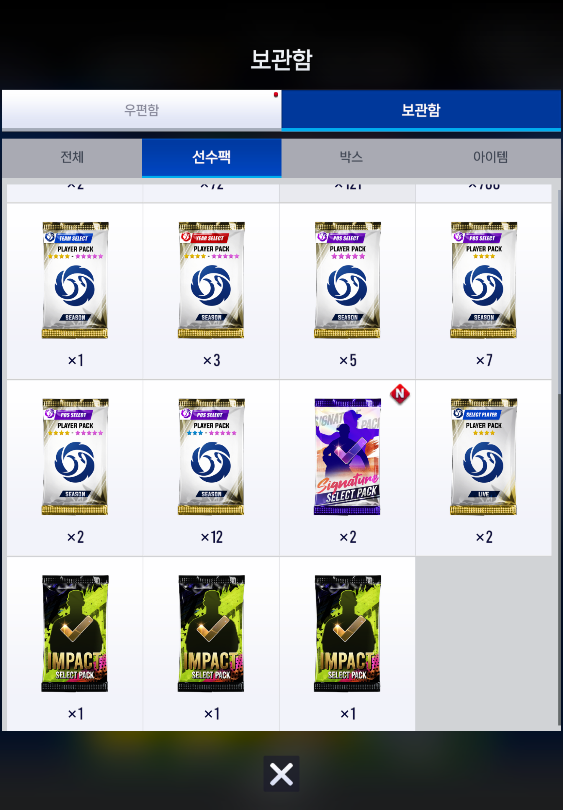 임펙 선택팩은 왜 안겹쳐지나요 2장 보유중인데