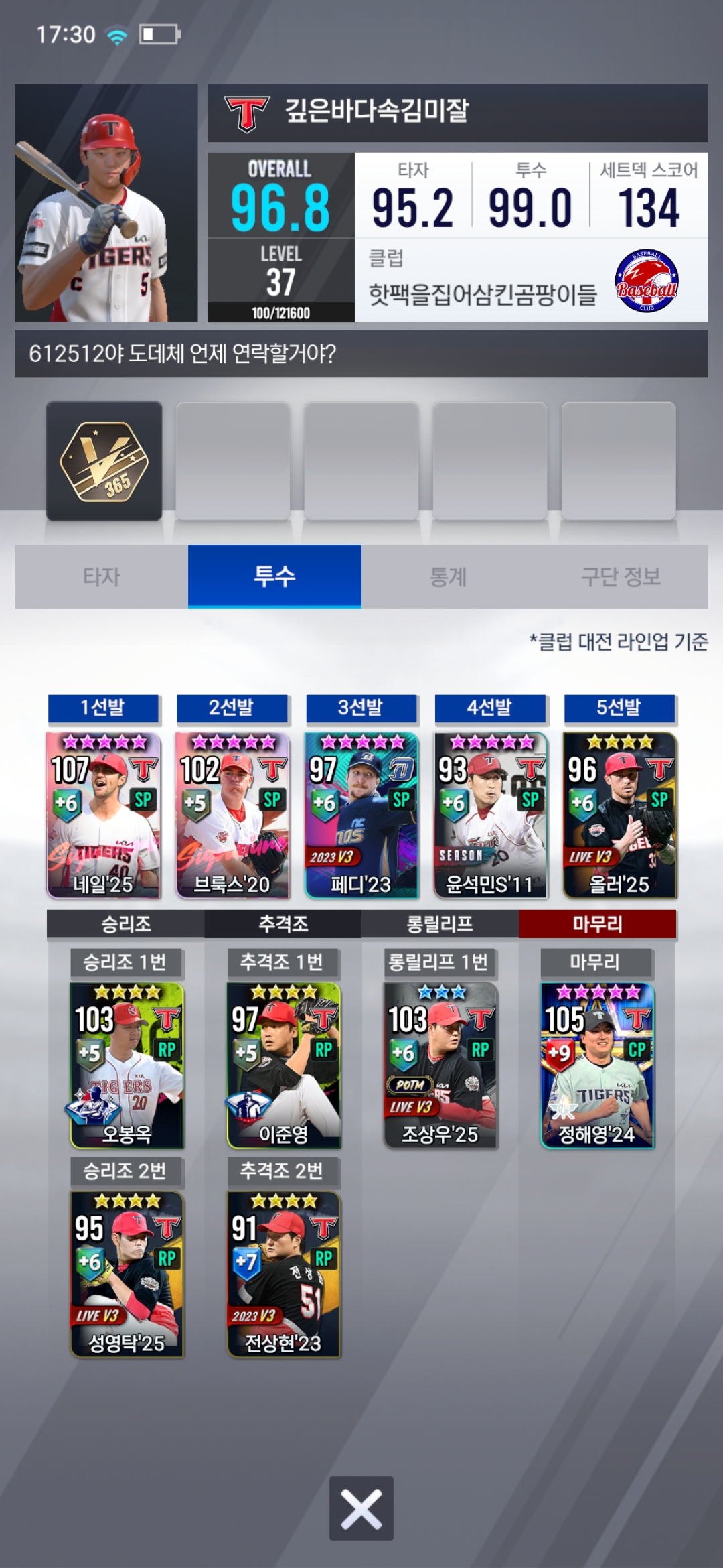 현재로썬, 윤석민이 폰세25라이브로 바뀐상태고 2주뒤쯤 올스타가 될것같습니다. 나성범은 한돌 10카까지 뚫어논상태 입니다.나성범 3각이 맞겠죠?