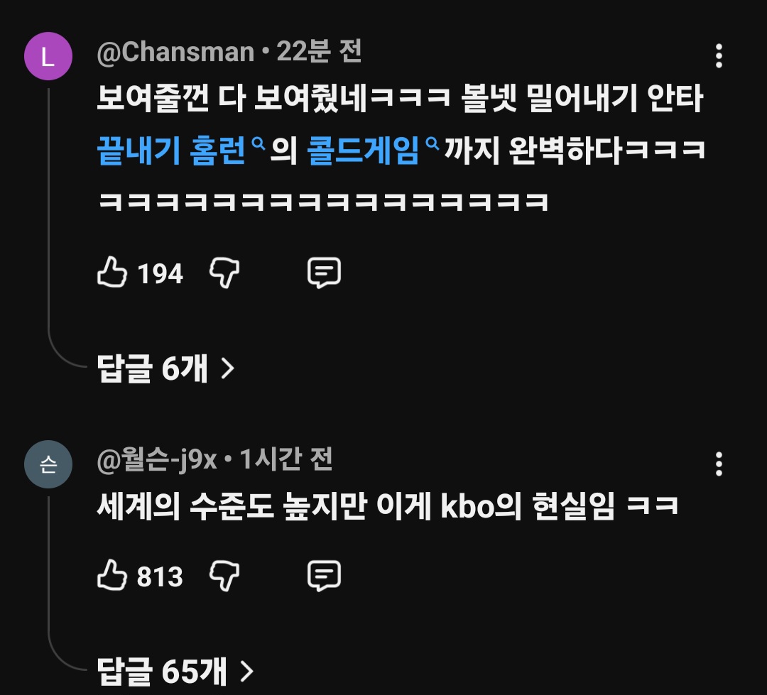 진심 싹다 잡아서 마운드에 내보내고싶네요.
