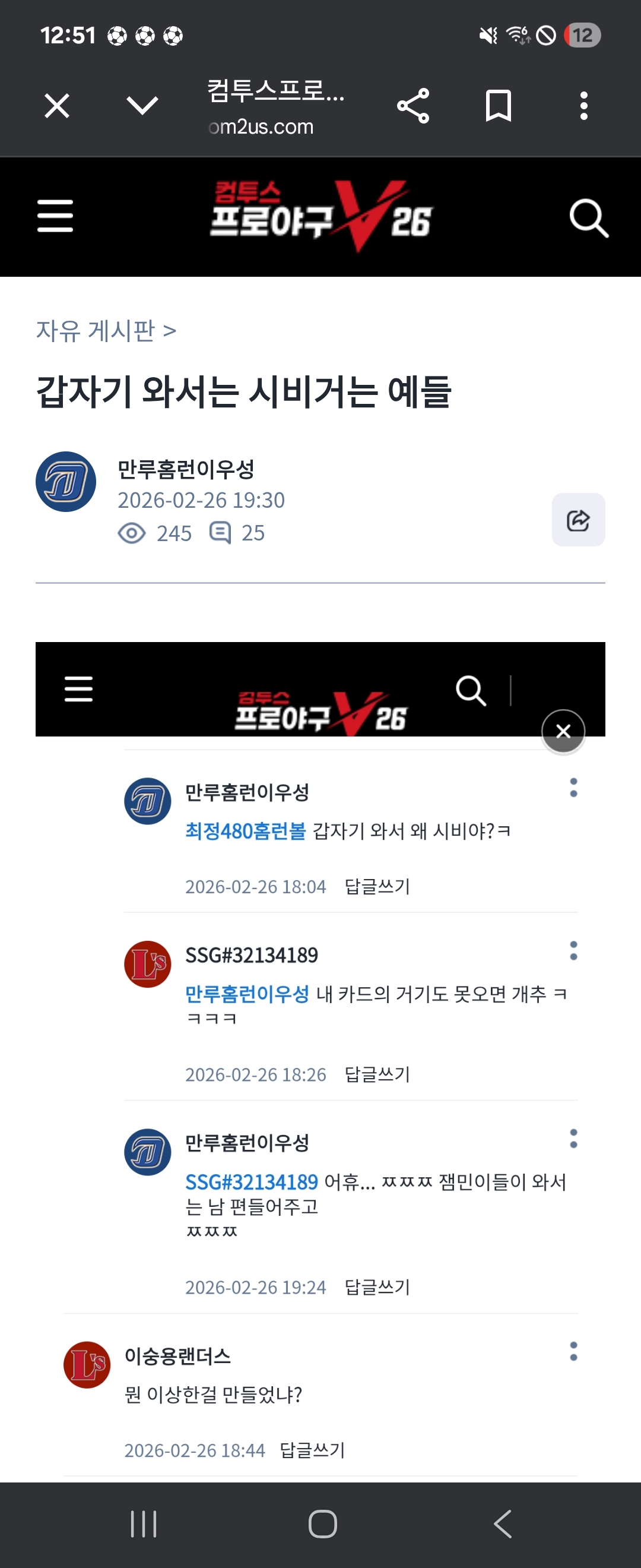 진짜 만루홈런이XX아 평소에 착하게 살지 그랬냐? 그리고 얘들을 왜 예들이라고 하냐? ㅉ