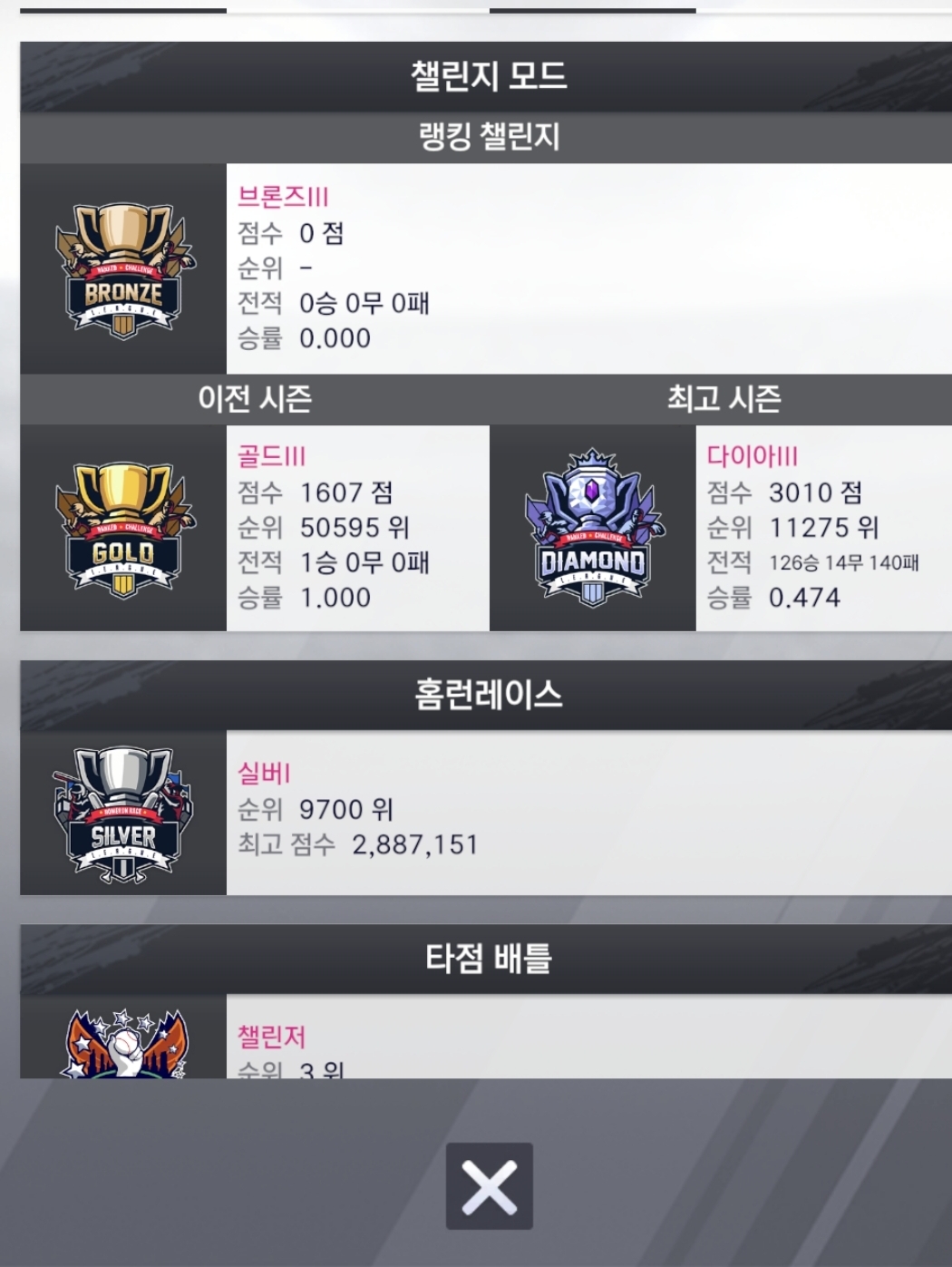 골글 받은분들 랭첼 이력 전부 확인