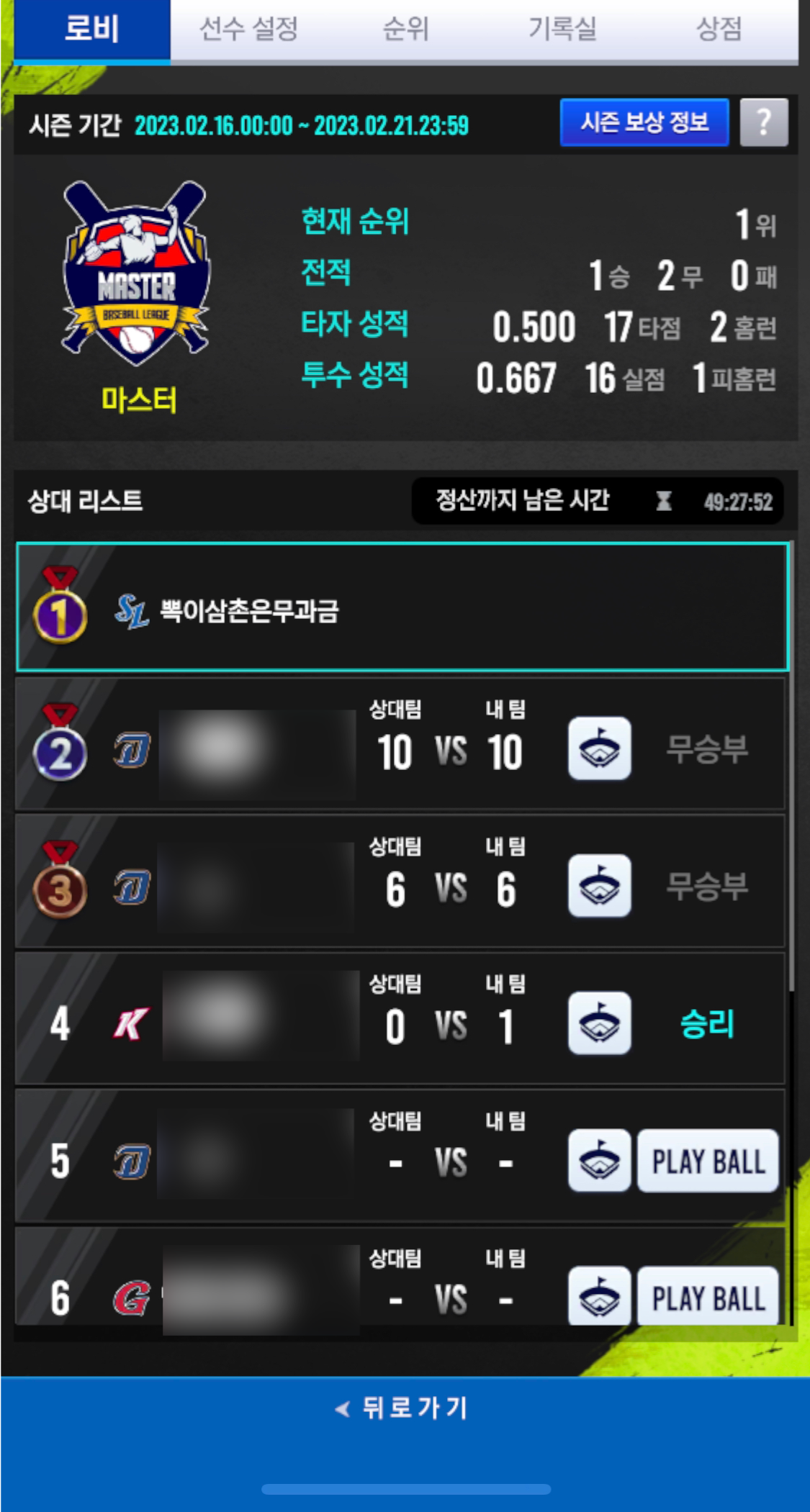 상대가 먼저 선공한 상태라 최소 6점은 내야 이기겠다 싶었는데 이상하게 퍼펙이 다 아웃 되더라구요? 겨우 희비로 1점 냄. 억까에 어이가 없어서 확인 누르고 나가서 순위보니까 1점으로 이김.
