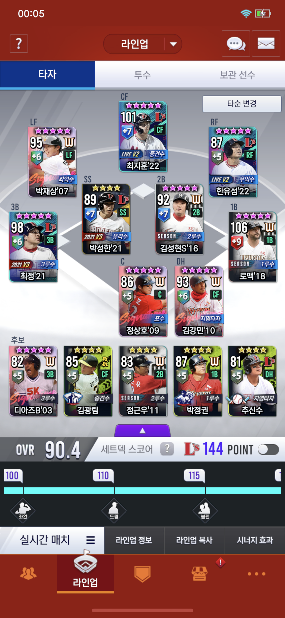 3루는 임팩최정을쓰고싶은데 엄청안나오네요..