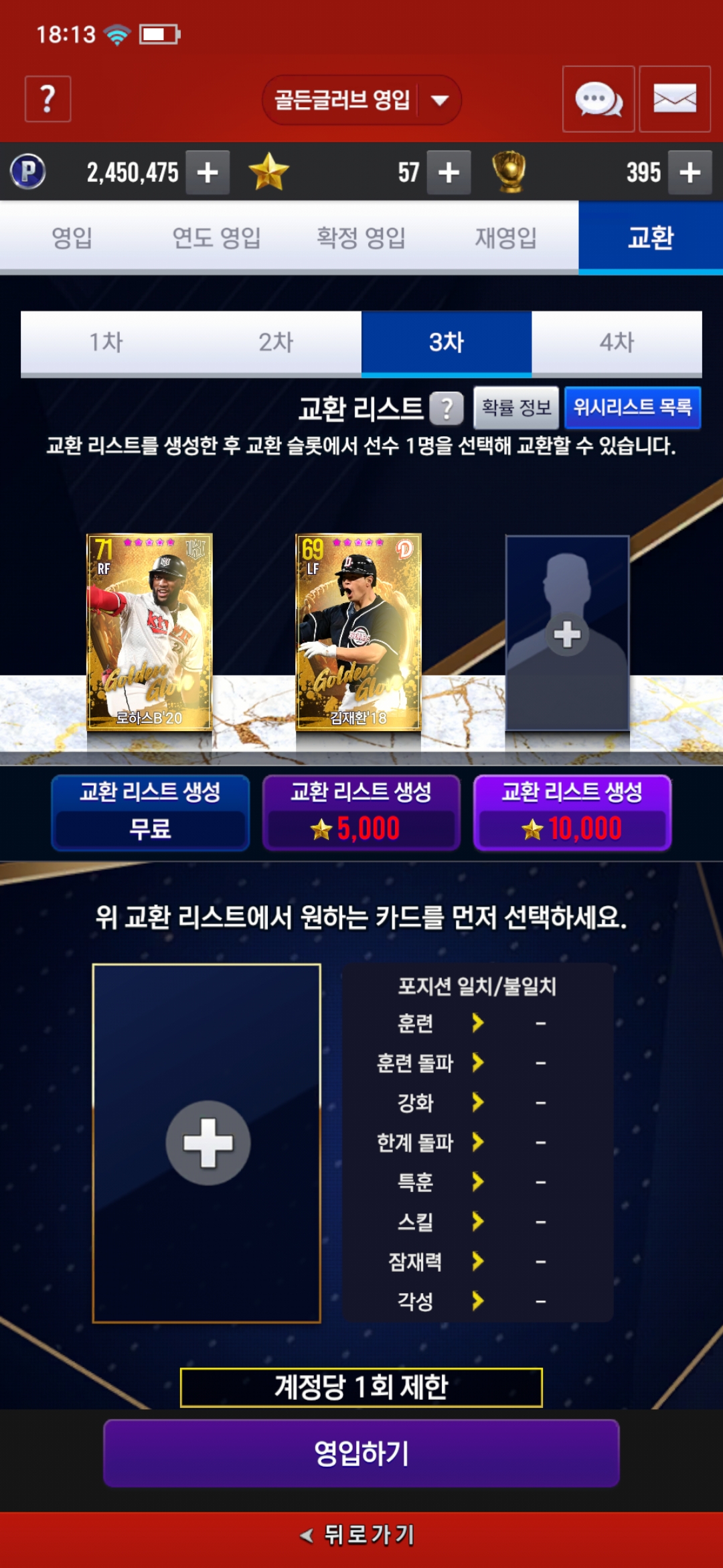 3차 교환에서 18 김재환이랑 20 로하스가 떳는데 누굴 골라야 하나요.