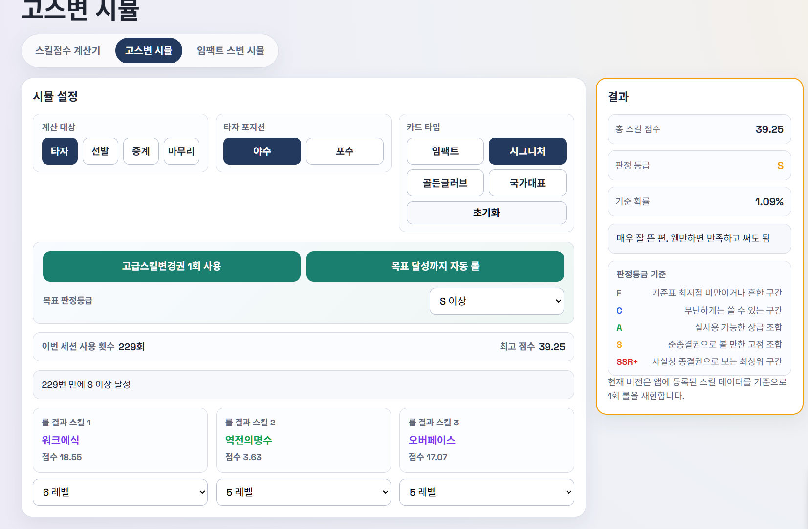 3. 임팩트 일반스킬변경권 시뮬레이션