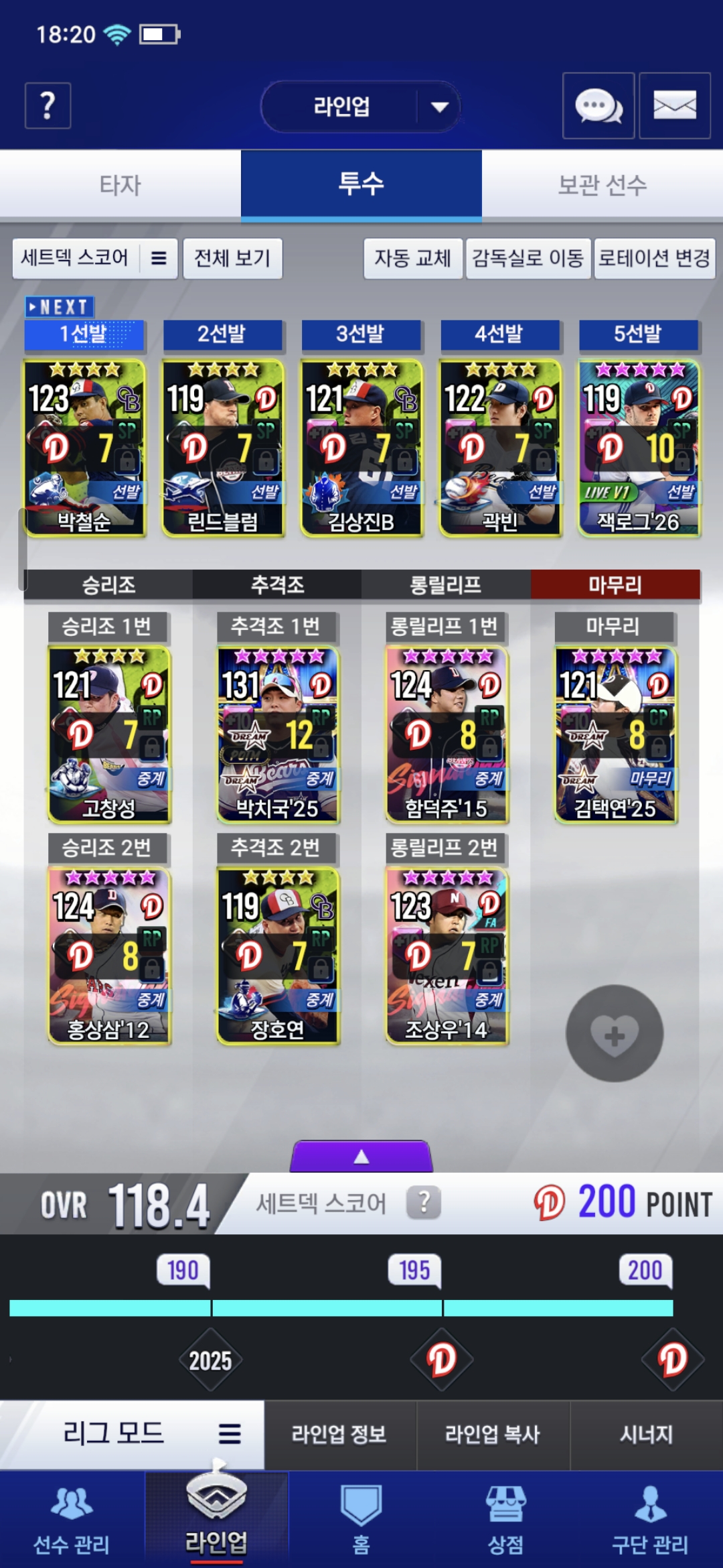 양의지 3각-> 6각 -> 리그 탑플 계승 -> 조커나 짜바리로 9각