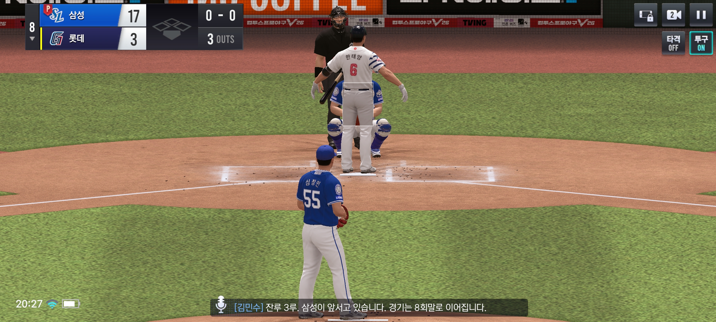 아마 타자 등장씬으로 인한 버그로 보이는데, 시뮬레이션으로 돌리지 않으면 계속 저상태고 투구off로 해도 진행안되네요.