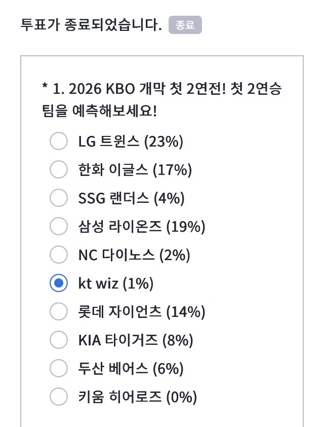 자유 게시판 1% 사나이 왕족입니다 왕족 2026-03-29 17:34 318 1 공유 공유 URL 복사 페이스북 왓츠앱 카카오톡 라인 레딧 닫기 공유 KT WIZ 찐 팬 1% 축배를 들어라 0 14 댓글 1