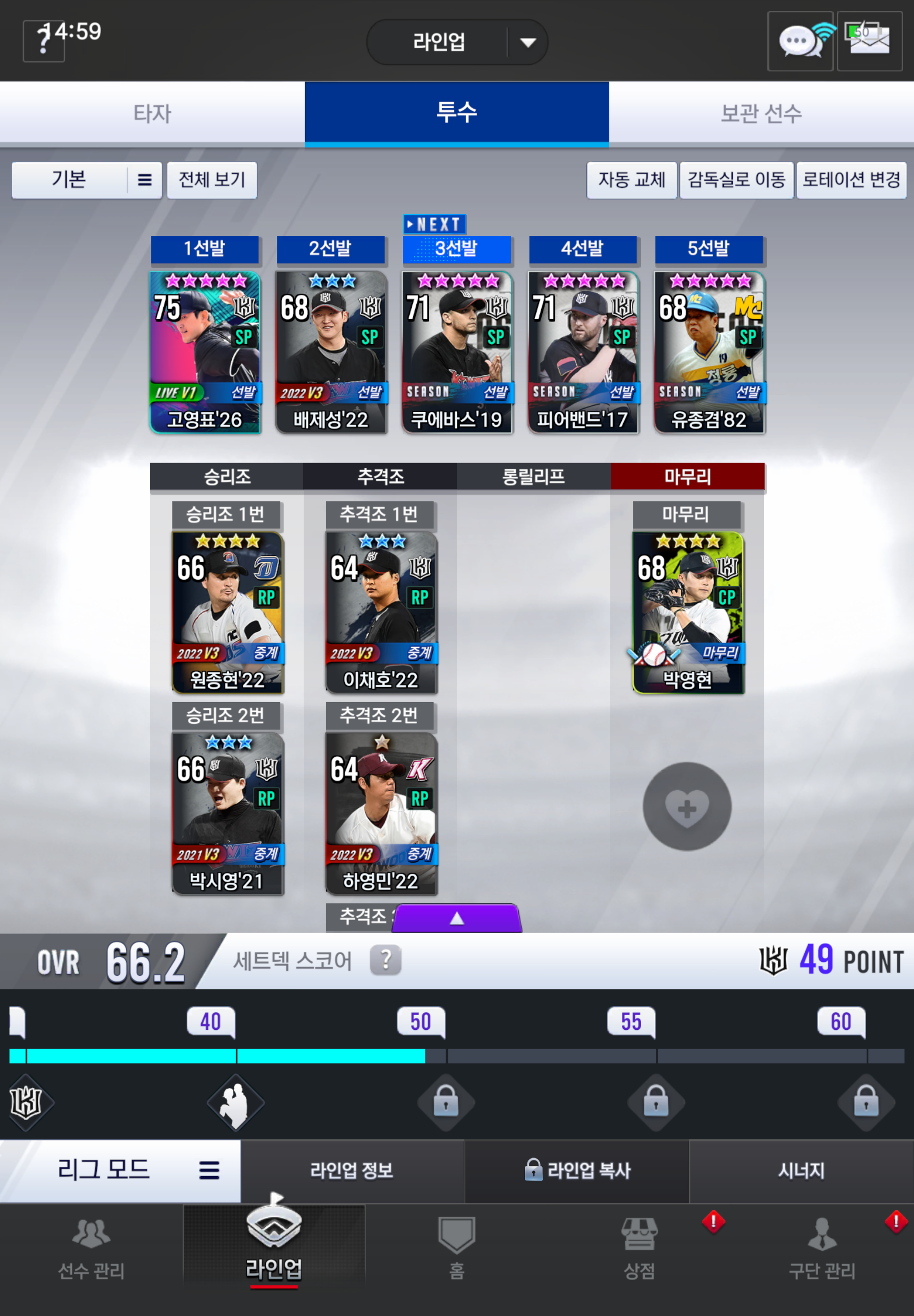 컴투스프로야구V 무과금으로도 즐겁게 플레이 가능합니다