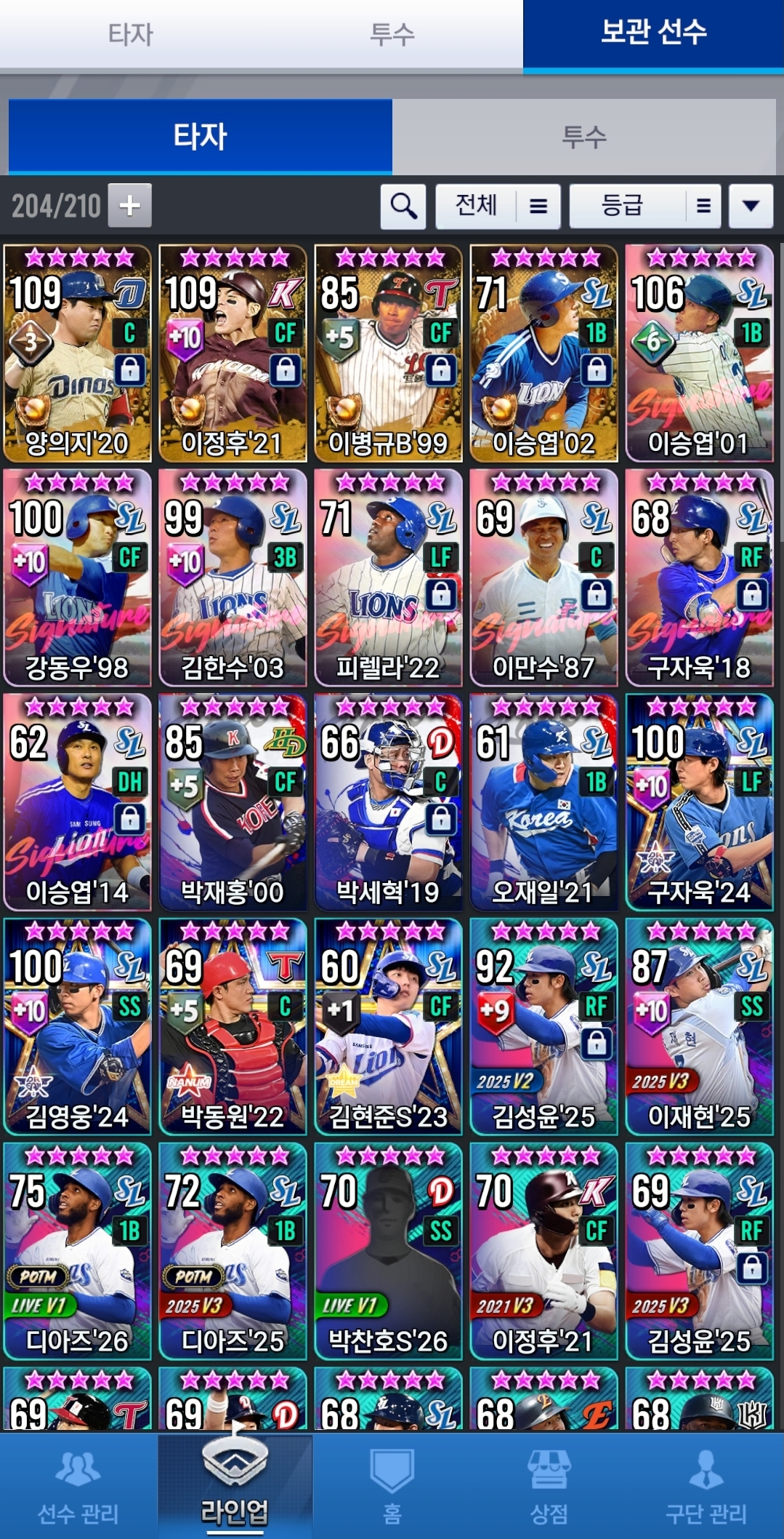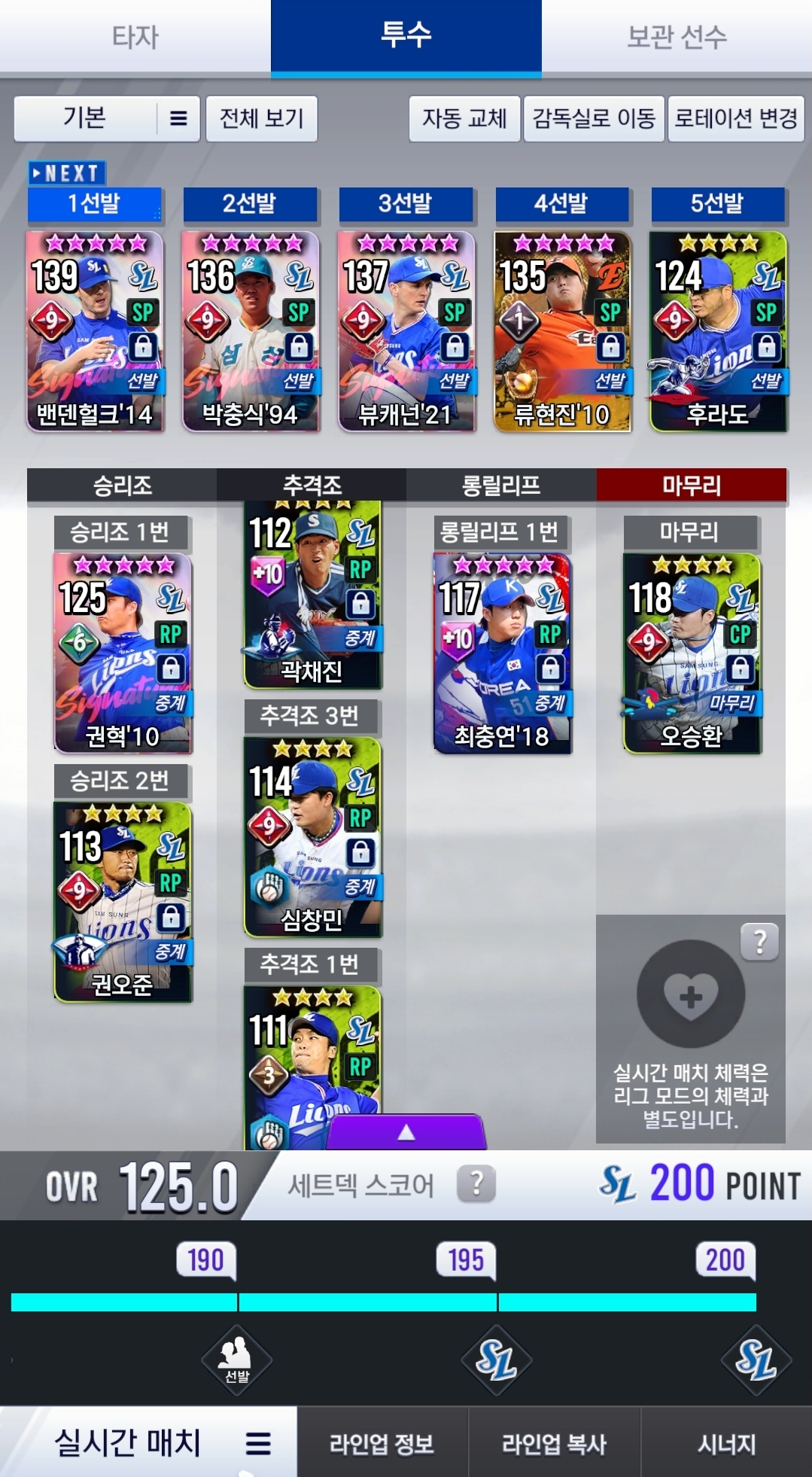 족보 없는 잡덱이긴 하지만, 세트덱은 타자 17년(구자욱, 최정 버프), 투수 21년으로 하고 있고, 지금 시선팩 1장 있고, 골글 한계돌파 10강까지 가능한 상황입니다.