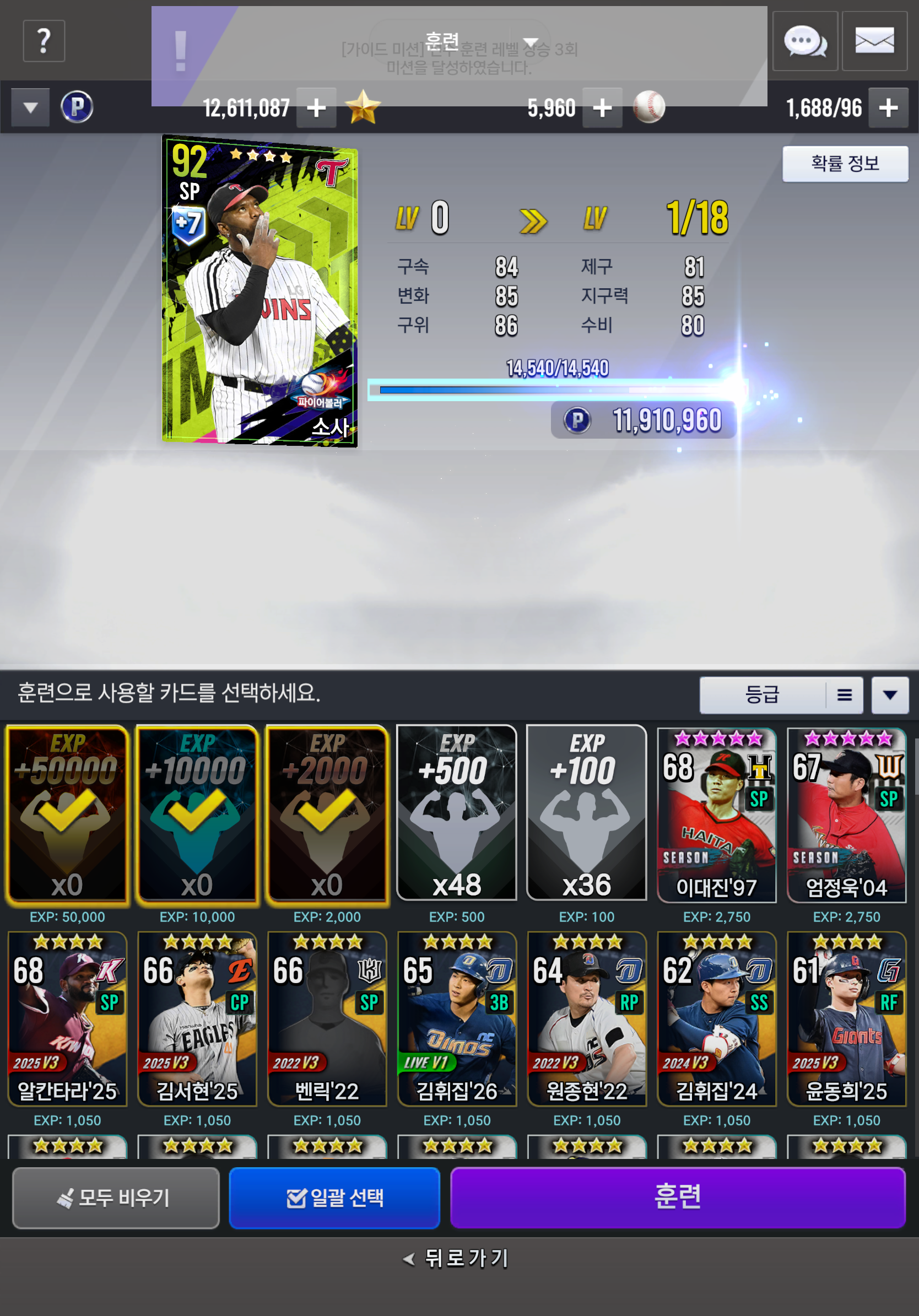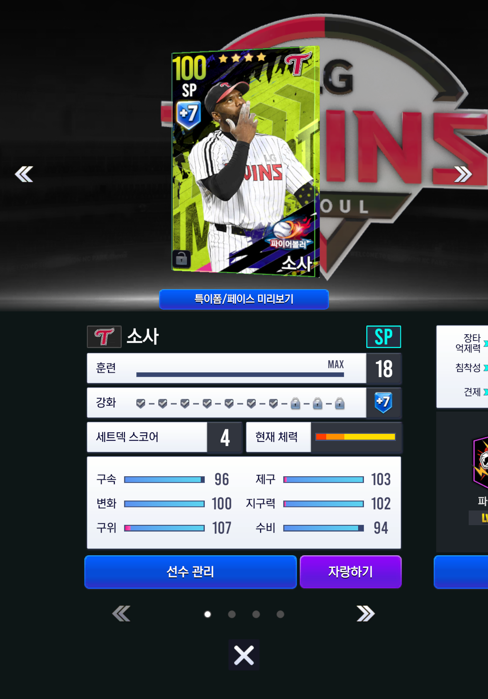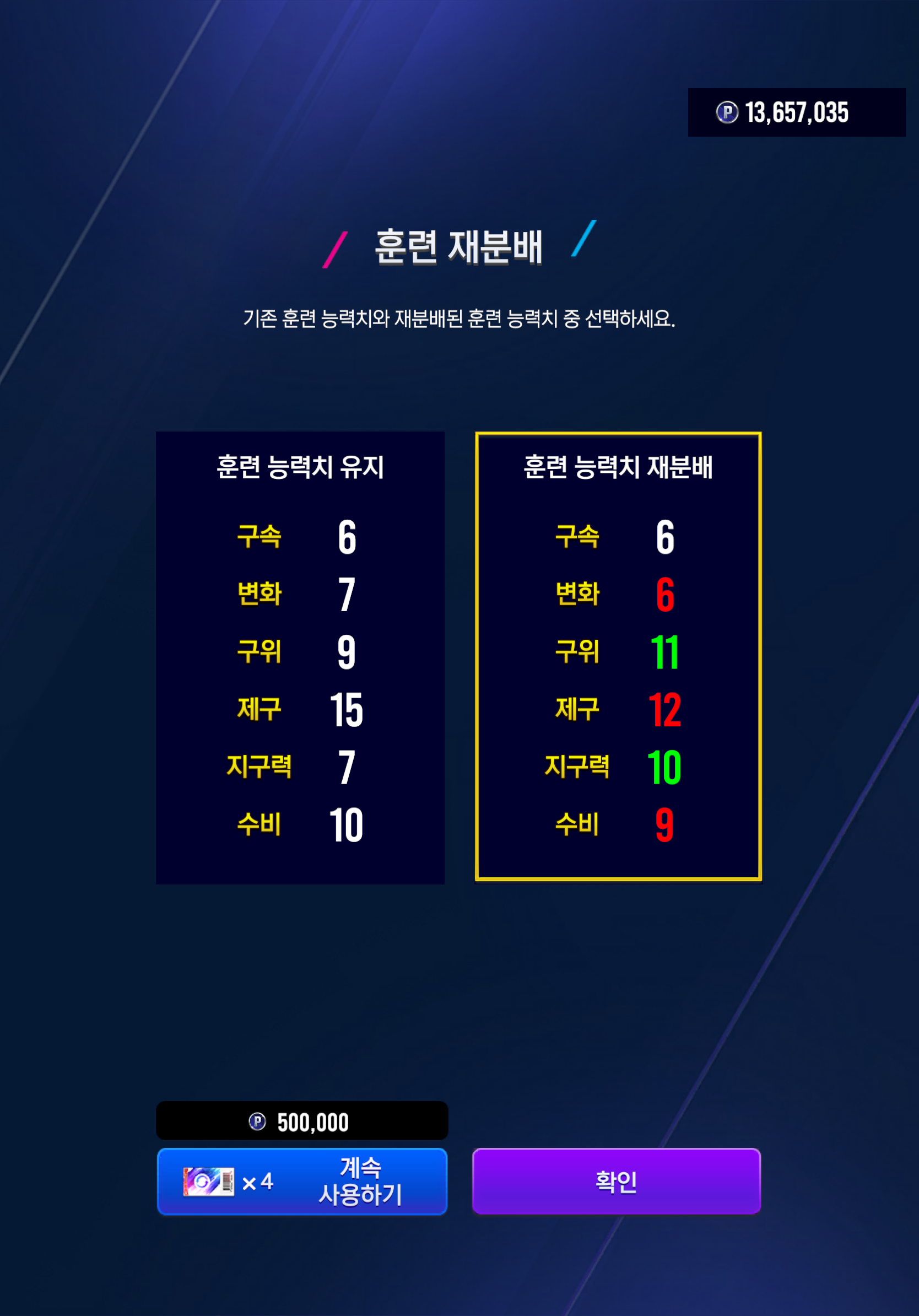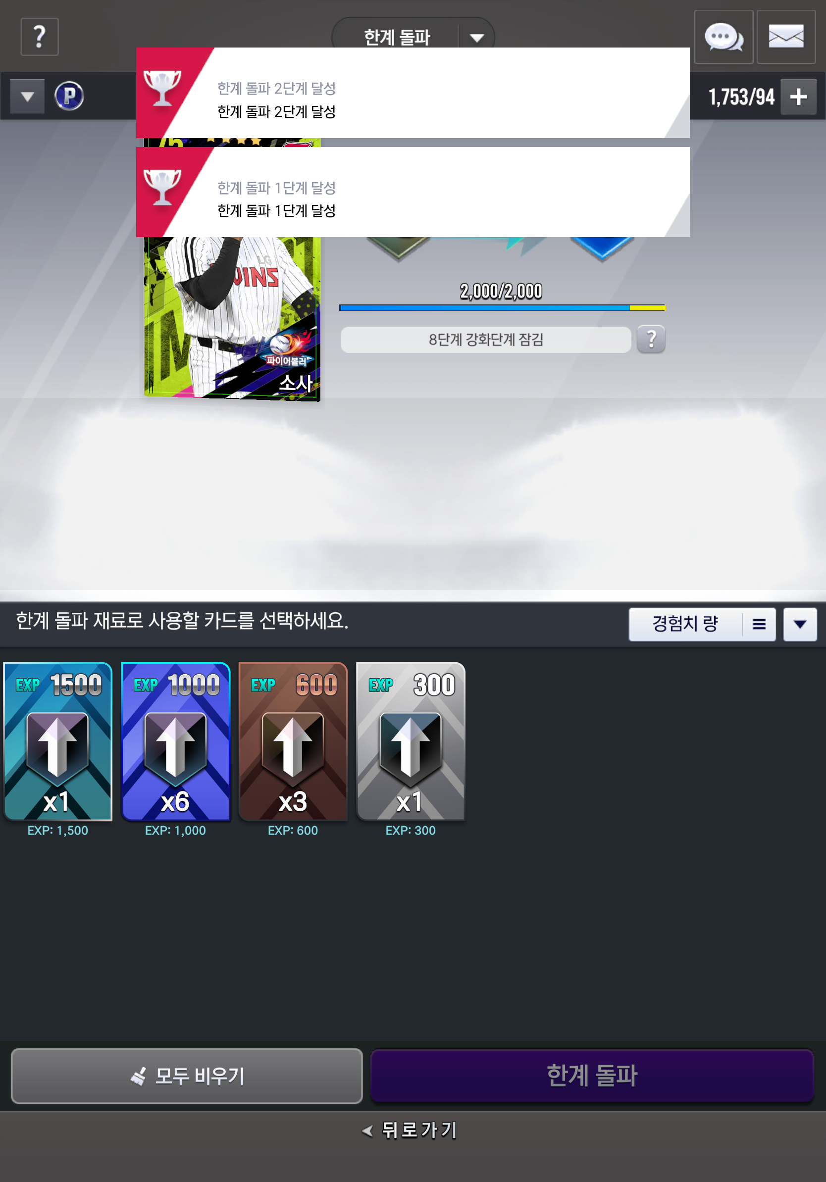 한계돌파, 훈련돌파 모두 각각 7단계, 최대단계까지 뚫어주고