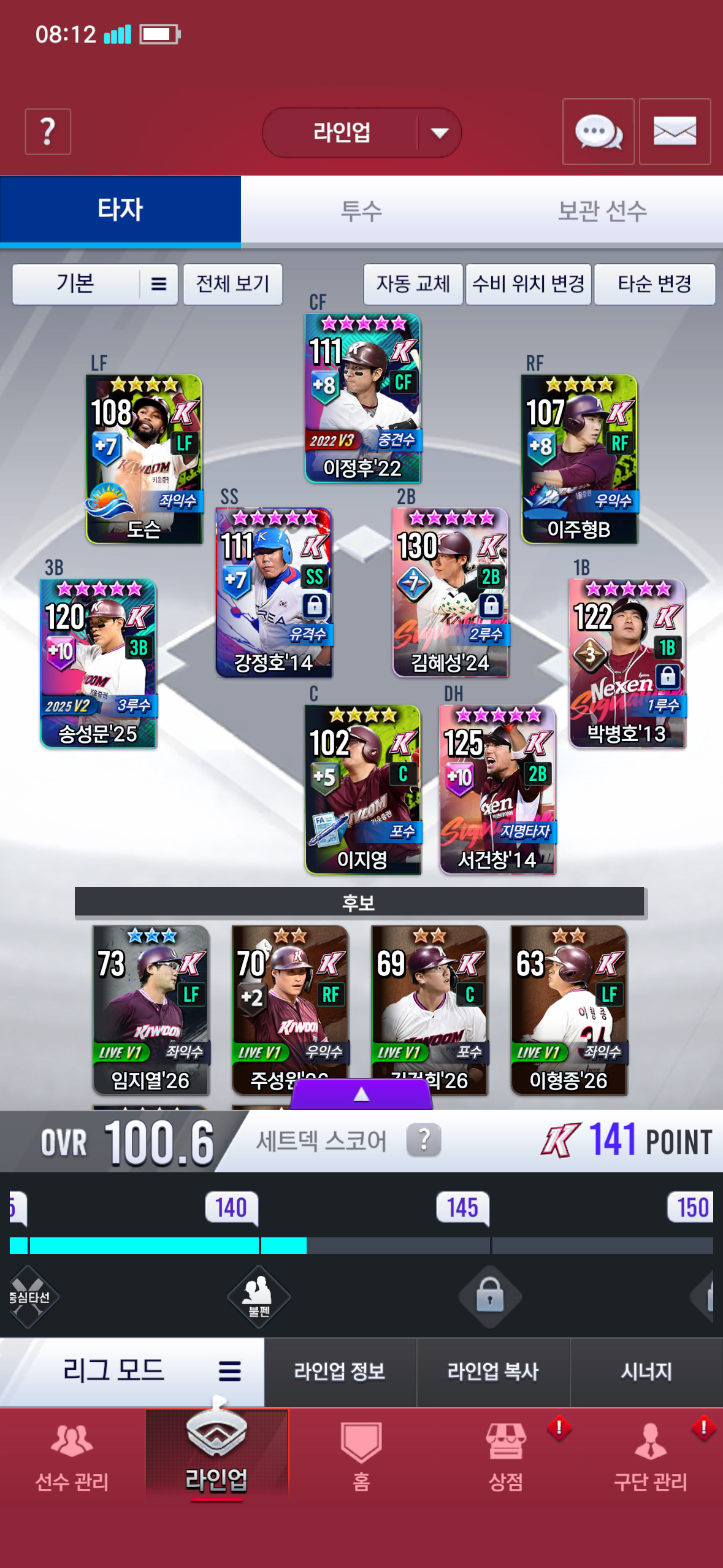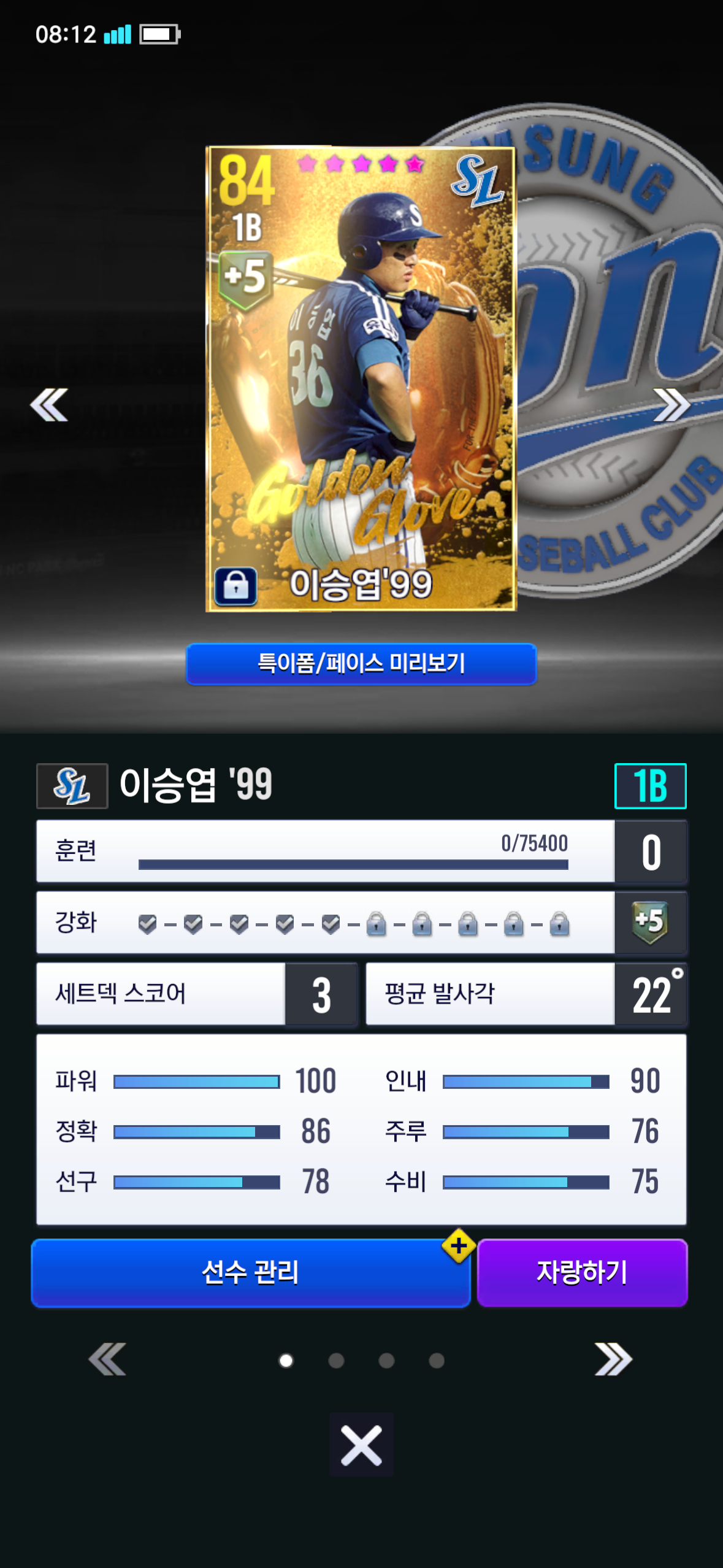 4차교환에서 99이승엽 뽑았는데 1루 2루 지타가 전부 풀훈, 풀강에 훈재분까지 돌린 카드들 이라서요..