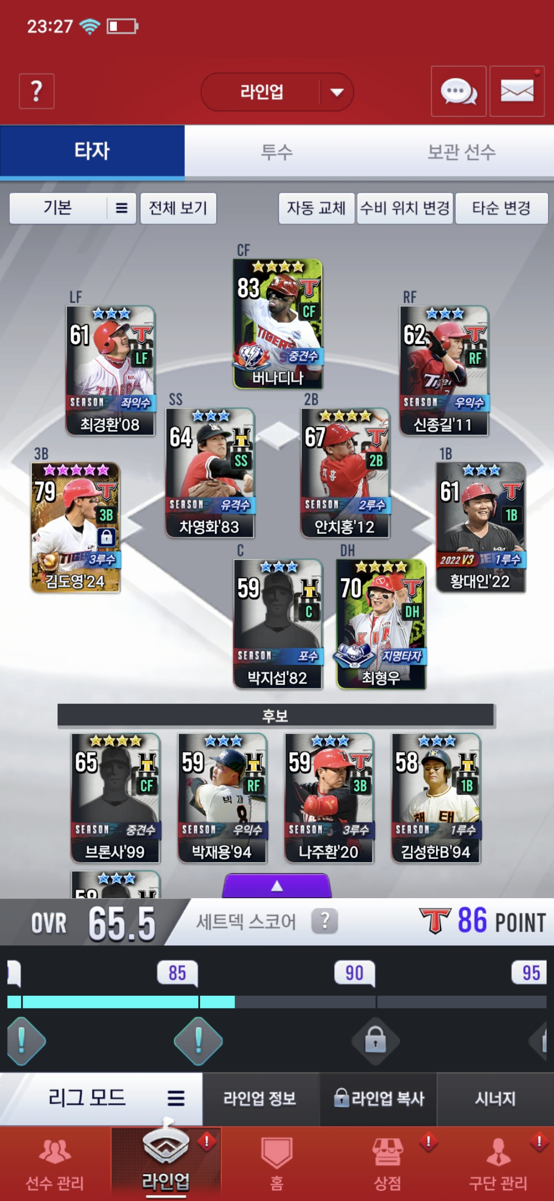최형우는 20시그 말고는 안 쓰나요?ㅠㅠ