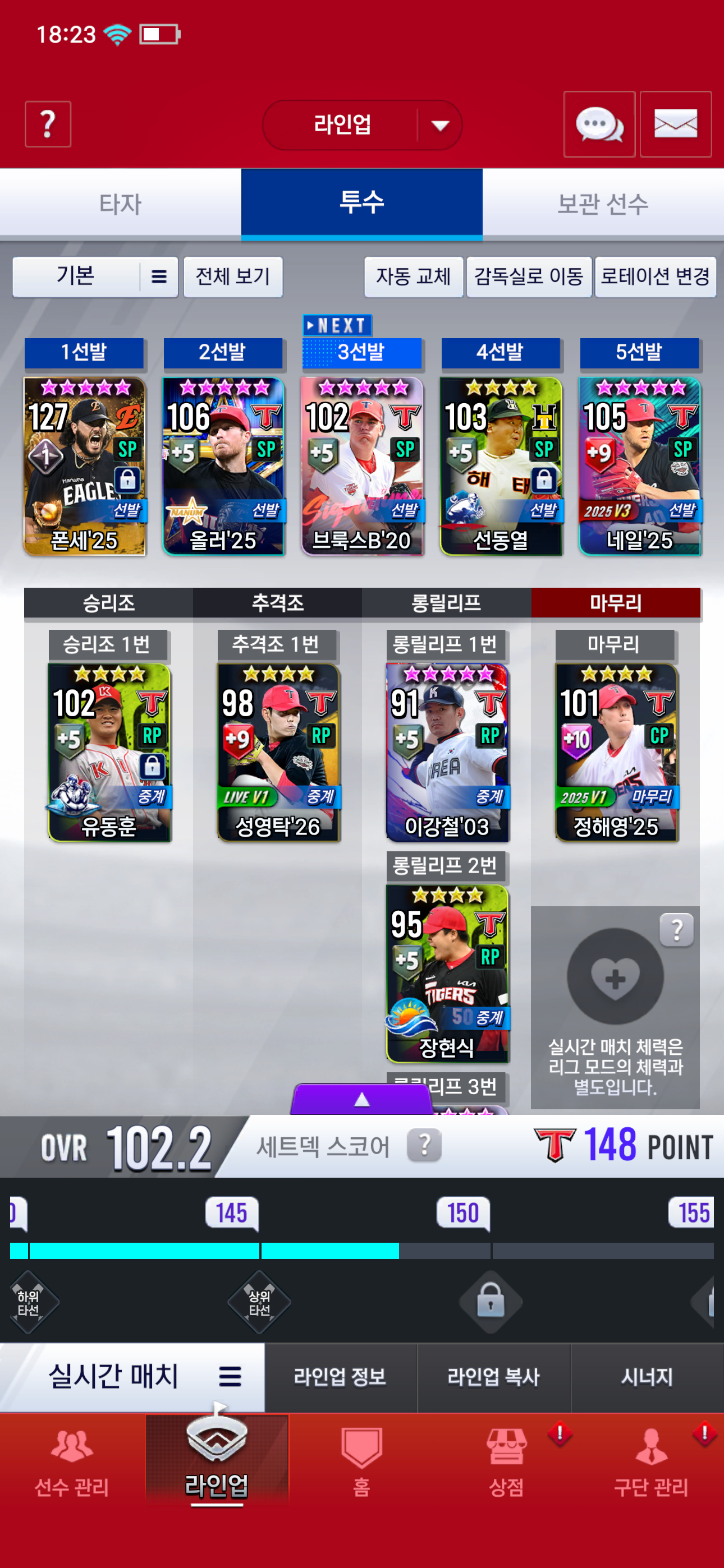 - (15현종, 91강철 등 후보 선수들을 어케 써야 할지.. 아마 26네일 먹으면 25네일에서 계승하고 세트덱 스코어 관리 땜에 기용할 것 같습니다)